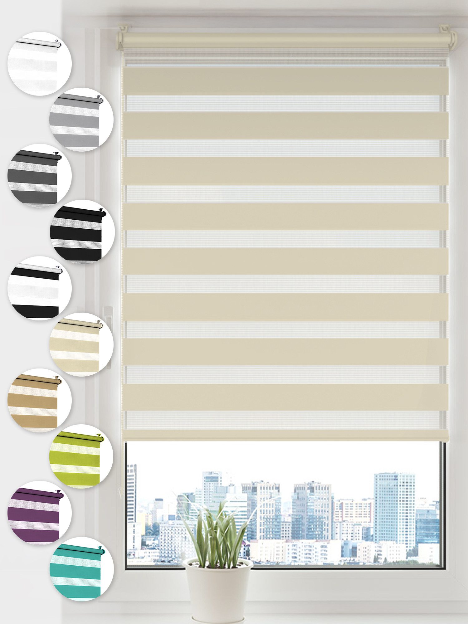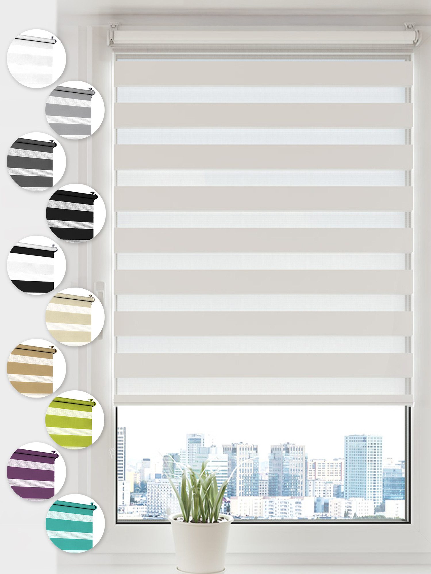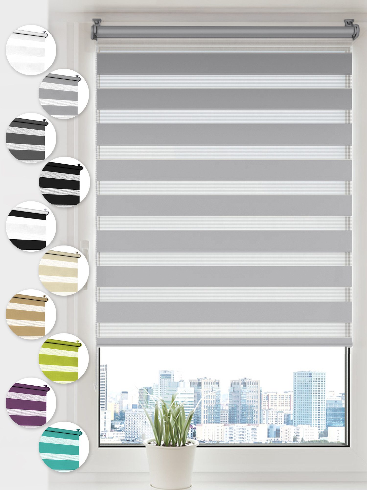 Die SONELLO Doppelrollos sind in folgenden Farben und Abmessungen vorhanden: