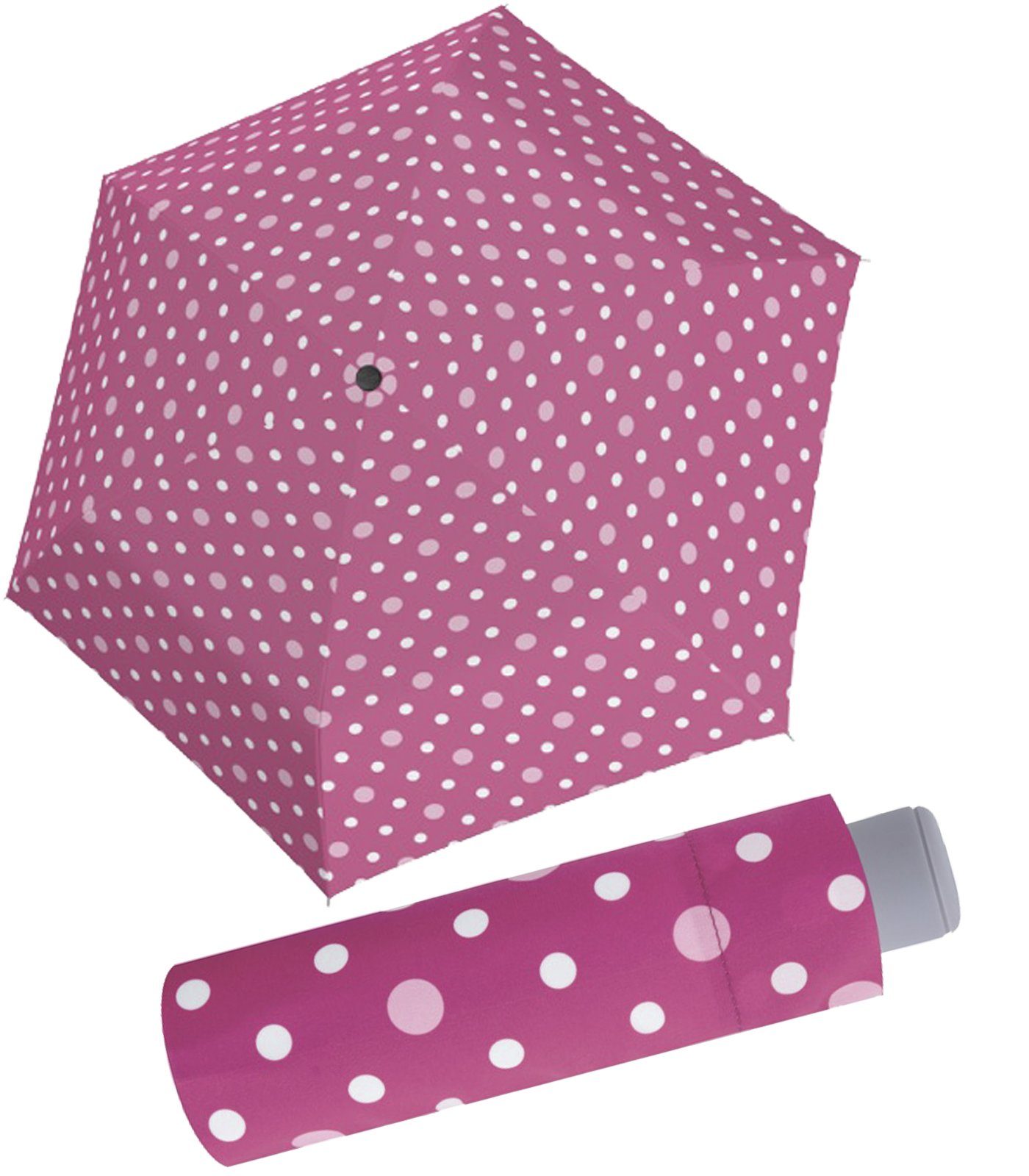 Der neue Kindertaschenschirm von doppler zeigt ein fröhliches Muster aus großen und kleinen Punkten. Dazu passen hervorragend die neuen hellen und leuchtenden Farben, die Ihrem Kind sicher Freude machen werden. Die Farbe des Schirmdaches ist rot. Das verwendete Material besteht aus 100% Polyester. Winzig klein, stabil und superleicht wiegt der Taschenschirm nur ca. 155 Gramm. Geöffnet ist das Dach 91 cm groß und geschlossen misst der Regenschirm 23 cm. Mit seinem leichten Gewicht und der geringen Розмір ist dieser Schirm perfekt geeignet für die Schultasche. Durch die Verwendung von Aluminium in Stock und Gestell ist der Schirm unglaublich leicht, wobei Fiberglas in den Speichen das Gewicht nochmals reduziert und die Flexibilität erhöht. In der verfügbaren Auswahl der Frühlingsfarben findet hier sicher jedes Kind seinen Lieblingsschirm.