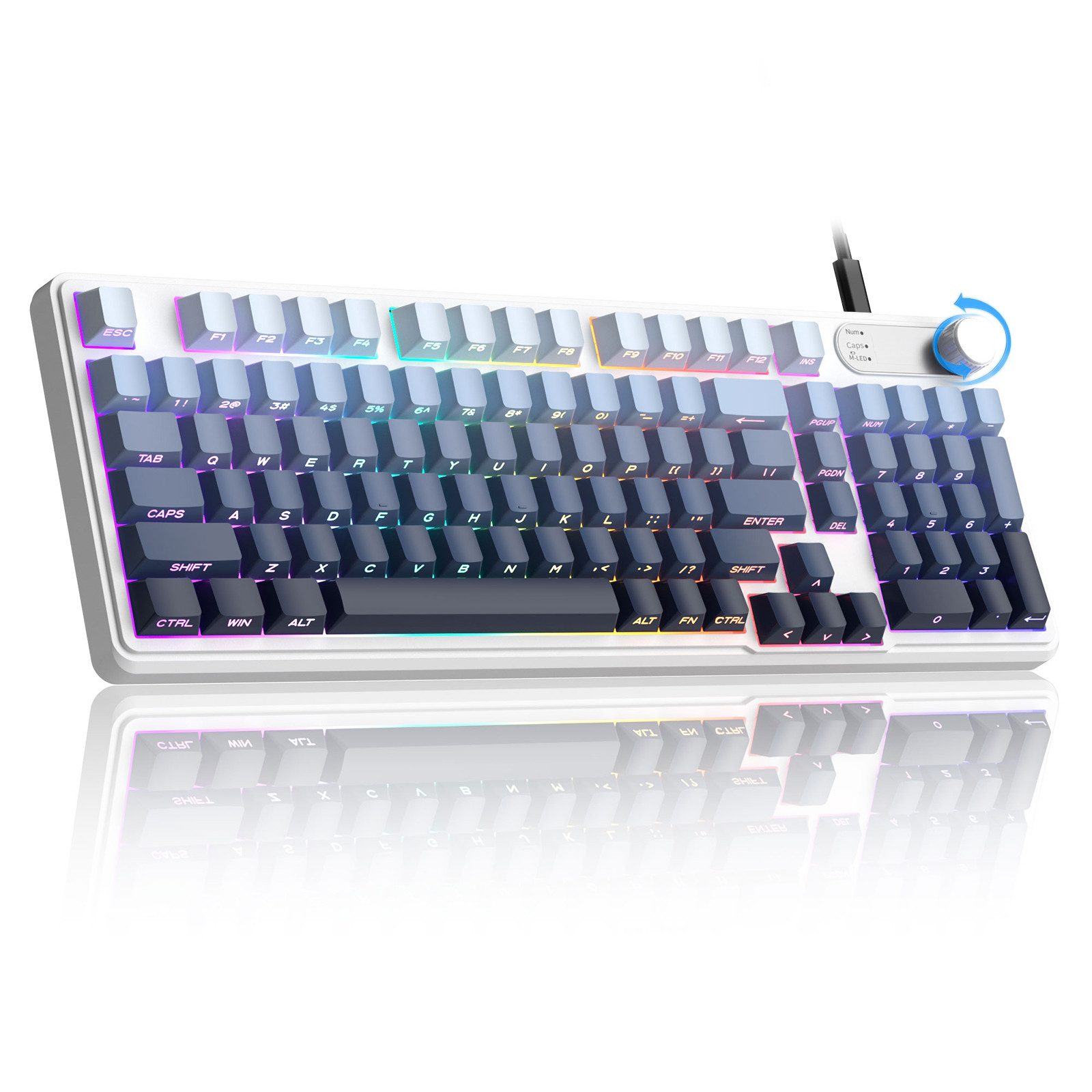 Besondere Merkmale | Seitendruck in Blau-Schwarz,Drehknopf für Lautstärke & Licht,USB-Kabel |