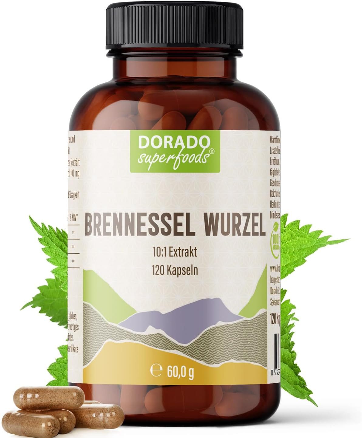 Zutaten | Zutaten pro Kapsel: 400 mg Brenesselwurzel Extrakt (enthält 5 % Polysaccharide), 100 mg Hydroxypropylmethylcellulose (Kapselhülle) |