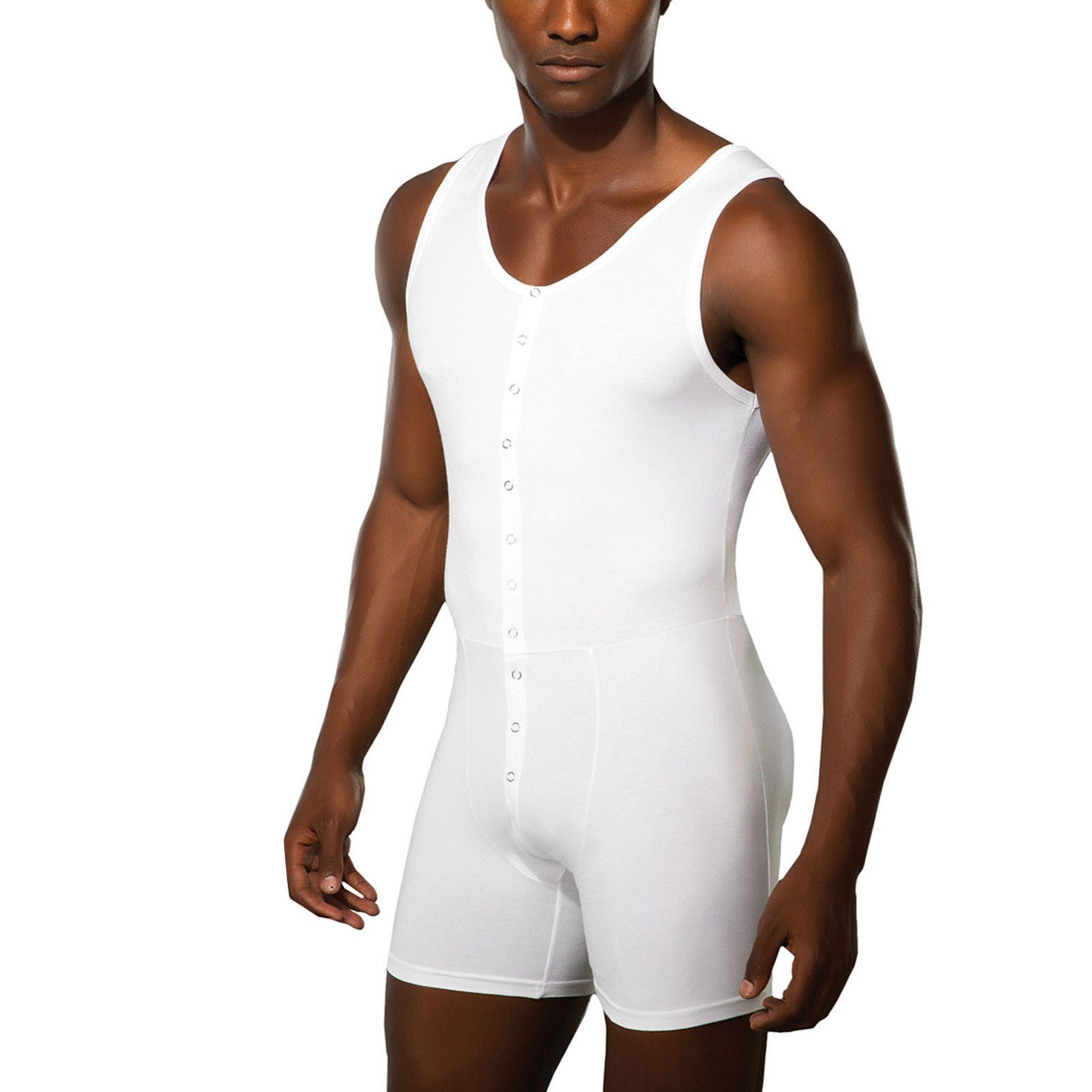 Designer Herrenbody mit breiten Trägern von Doreanse Underwear. Der Body mit durchgehender Knopfleiste und längerem Bein, original Doreanse - DA5002 - Ärmelloser Männerbody mit tiefem Ausschnitt und sportivem figurbetontem Schnitt aus Modal-Baumwoll-Mischung .