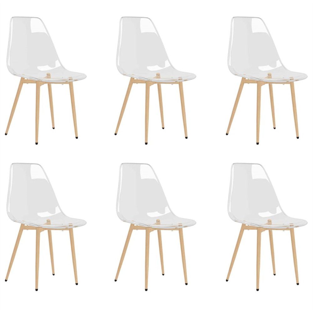 Der Esszimmerstuhl hat eine transparente Sitzfläche mit weichen Linien, die ihn besonders aussehen lassen. Diese Esszimmerstühle sind aus PET gefertigt, was sie pflegeleicht macht. Außerdem verleihen die Metallbeine den Küchenstühlen zusätzliche Robustheit. Die ergonomisch geschwungene Rückenlehne sorgt für höchsten Sitzkomfort. Die Stuhlbeinkappen verhindern ein Verkratzen des Bodens und sorgen gleichzeitig für zusätzliche Stabilität.