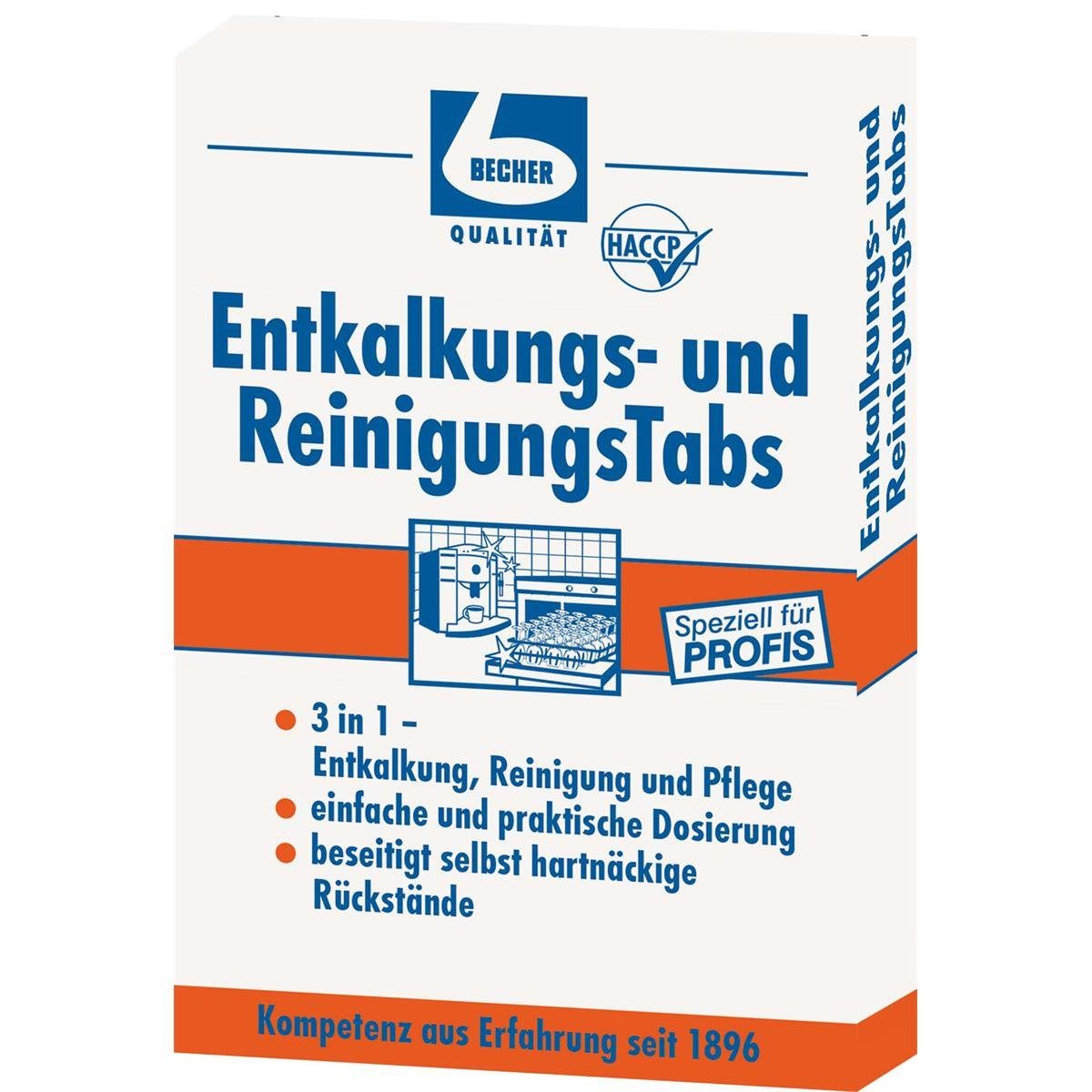 Entkalkung, Reinigung und PflegeDie Dr. Becher Entkalkungs- und Reinigungs Tabs sind die perfekte Wahl zur Entkalkung, Reinigung und Pflege Ihrer Maschinen. Die Tabs entfernen rückstandslos jegliche Spuren von Kalk, Fett, Öl und anderem Schmutz aus dem Inneren Ihrer Waschmaschinen, Spülmaschinen und Kaffeemaschinen. Auch für gewerbliche Wasch- und Spülmaschinen sowie semiprofessionelle Kaffeeautomaten sind sie perfekt geeignet. Die Dr. Becher Entkalkungs- und Reinigungs Tabs kommen im praktischen Achterpack und jede Einheit reicht genau für eine Anwendung. Geben Sie einfach eines der Tabs in Ihre Maschine und lassen Sie diese anschließend wie gewohnt durchlaufen.