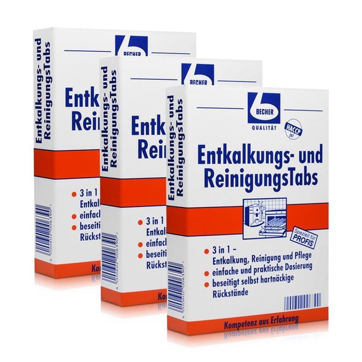 Entkalkung, Reinigung und PflegeDie Dr. Becher Entkalkungs- und Reinigungs Tabs sind die perfekte Wahl zur Entkalkung, Reinigung und Pflege Ihrer Maschinen. Die Tabs entfernen rückstandslos jegliche Spuren von Kalk, Fett, Öl und anderem Schmutz aus dem Inneren Ihrer Waschmaschinen, Spülmaschinen und Kaffeemaschinen. Auch für gewerbliche Wasch- und Spülmaschinen sowie semiprofessionelle Kaffeeautomaten sind sie perfekt geeignet. Die Dr. Becher Entkalkungs- und Reinigungs Tabs kommen im praktischen Achterpack und jede Einheit reicht genau für eine Anwendung. Geben Sie einfach eines der Tabs in Ihre Maschine und lassen Sie diese anschließend wie gewohnt durchlaufen.