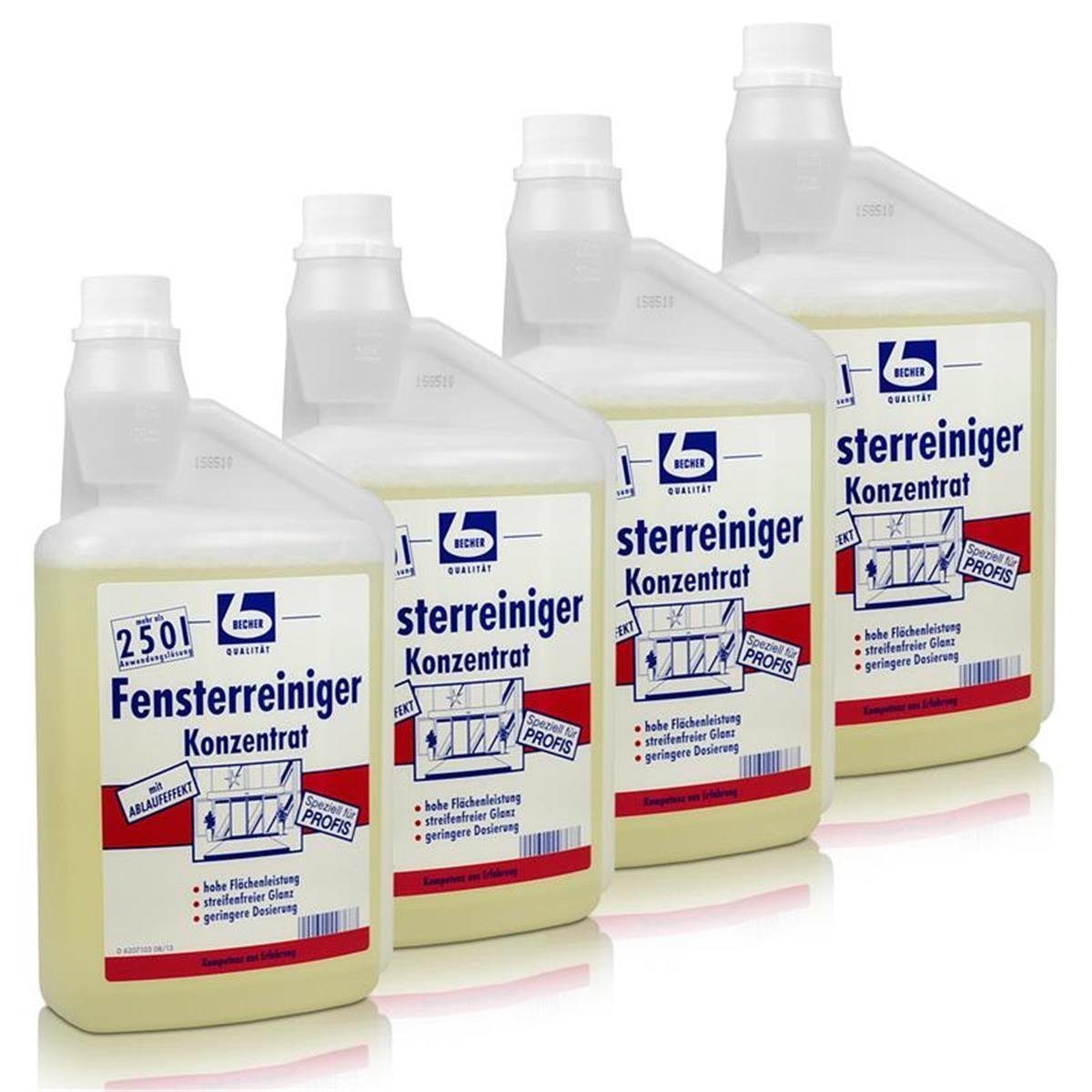 Unser Dr. Becher Fensterreiniger Konzentrat bietet Ihnen die Möglichkeit, ein für Profi-Anwender konzipiertes Produkt in der häuslichen Umgebung anzuwenden und so einwandfreie Ergebnisse zu erzielen. Das Konzentrat ist gleichermaßen geeignet für stark verschmutzte Fenster, Fensterrahmen, Schaufenster-, Glas- sowie Kunststoffflächen. Die Flasche erlaubt eine sehr einfache Dosierung. Verschmutzungen aller Art werden mühelos entfernt, darunter Öle, Fette, Ruß und Umweltstaub.
