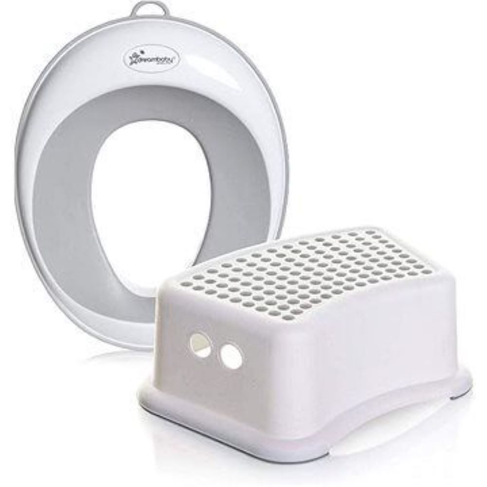 Gestalte den Toilettengang für Dein Kind zu einem sicheren und angenehmen Erlebnis mit der Toilettensitzauflage und dem zusätzlichen Tritthocker von Dreambaby. Das 2er Set für Toilettentraining ist die praktische Lösung für Kleinkinder, um ihnen den Übergang zur „großen Toilette“ zu erleichtern. Durch das neutrale Design in weiß/grau passt das Toilettentrainingsset nahezu in jedes Badezimmer oder Gäste-WC Schenke Deinem Kind mehr Selbstständigkeit und Sicherheit beim Toilettengang.