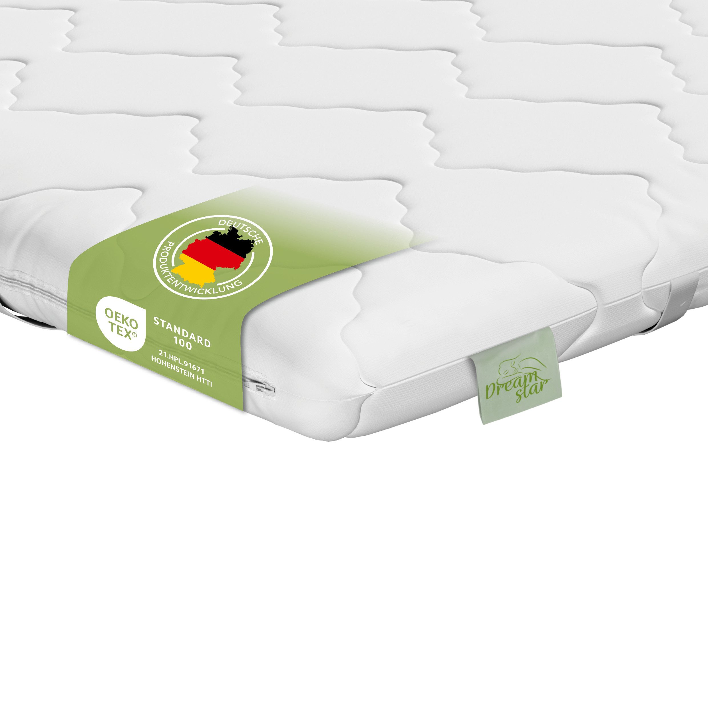 Unser Dreamstar Matratzentopper hat eine Gesamthöhe von ca. 6 cm. Der Kern ist als Kaltschaum, Komfortschaum oder auch Viscoschaum-Варіанти erhältlich und damit in drei verschiedenen Härtegraden. Die Auflage ist ideal, um den Liegekomfort von Matratzen oder Schlafsofas zu verbessern und weicher zu gestalten.