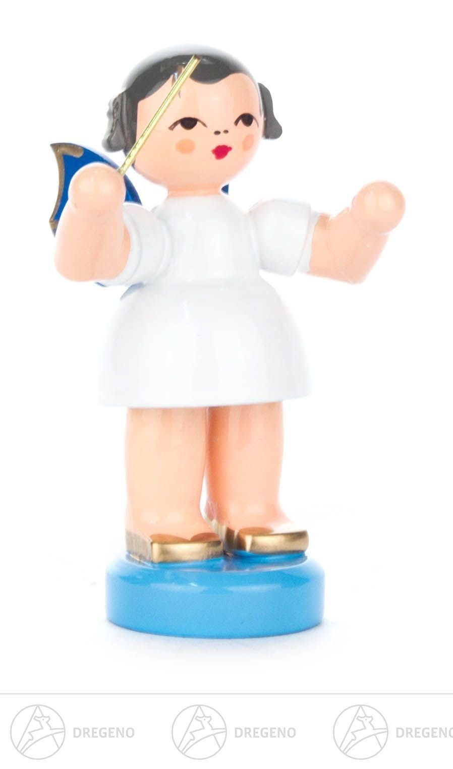 Dregeno Erzgebirge Engelfigur Engel Dirigent stehend, blaue Flügel Höhe ca 5,5 cm NEU