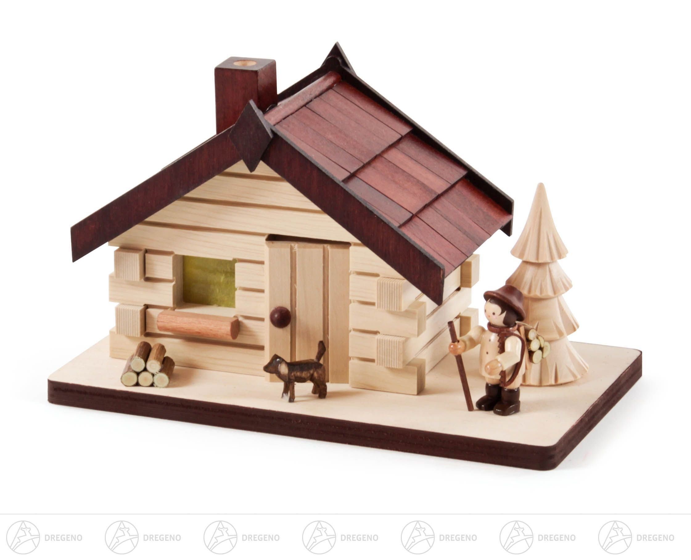 Dregeno Erzgebirge Räucherofen Räuchermann Räucherhaus mit Waldarbeiter Breite x Höhe x Tiefe 18