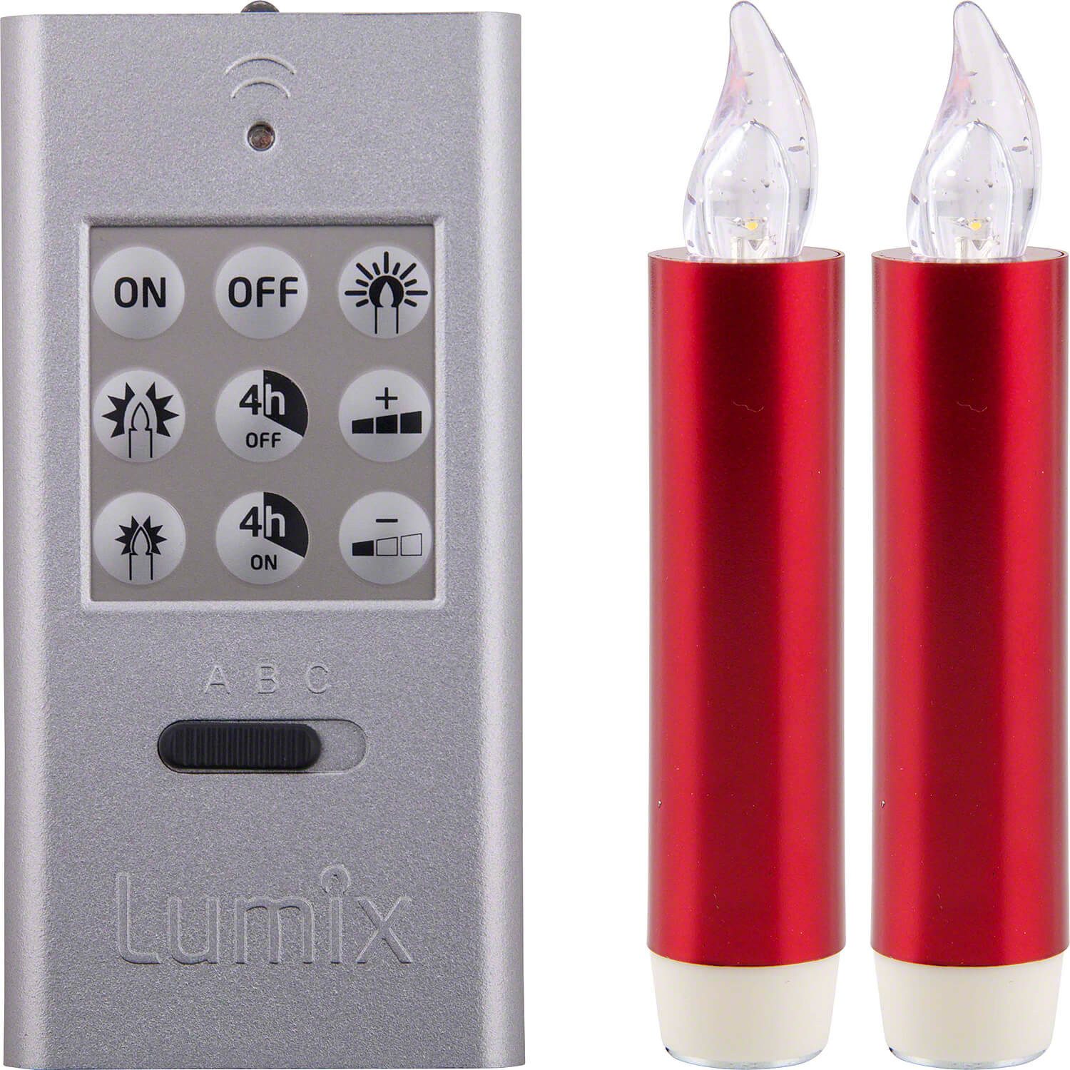 Schwibbogen LUMIX CLASSIC MINI S SuperLight, Basis-Set rot, 2 Kerzen, 1 Fernbedien
