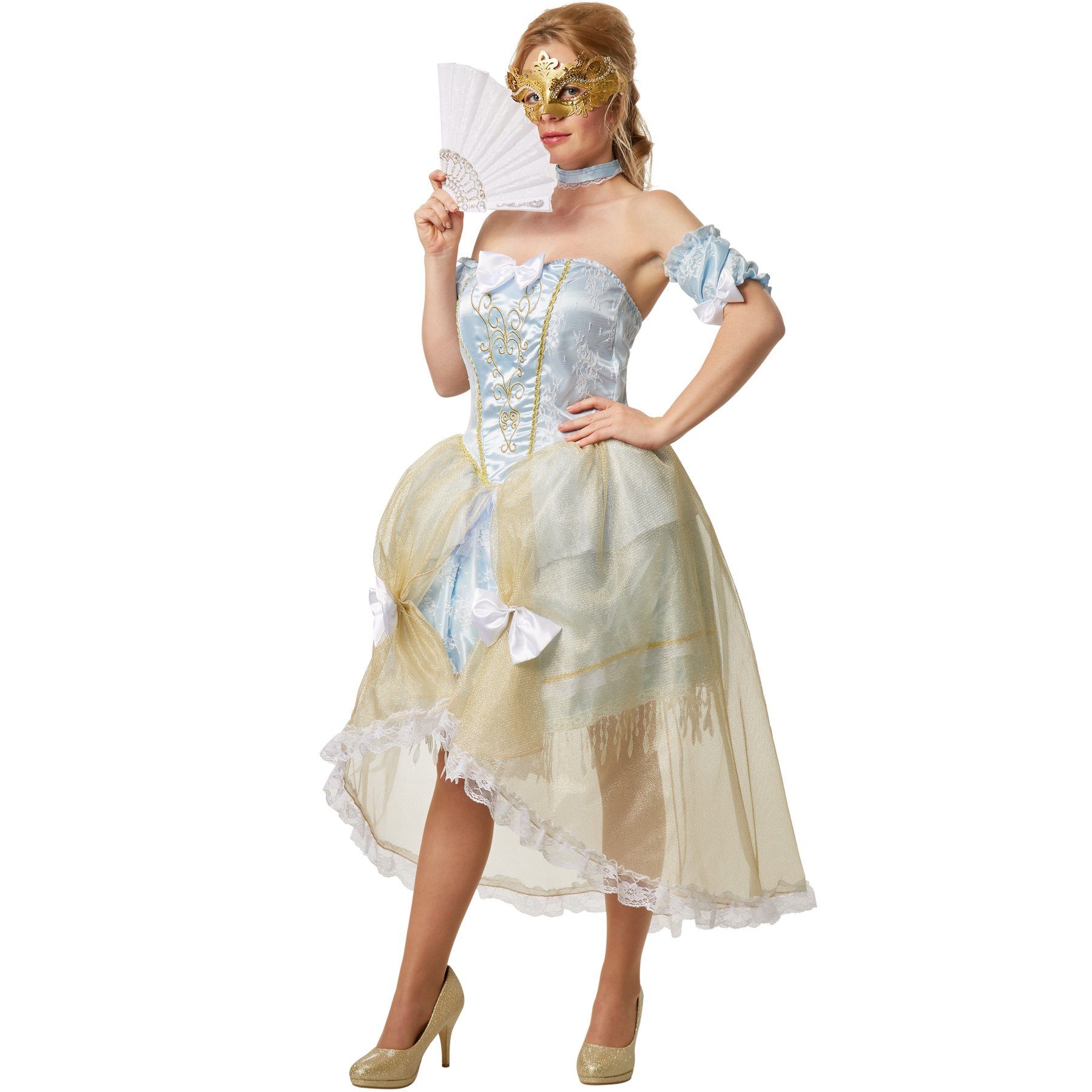 Ausstattung | Kleid, Puffärmel, Strumpfband, Halsband, Maske, Fächer und Schuhe sind nicht im Lieferumfang enthalten. |