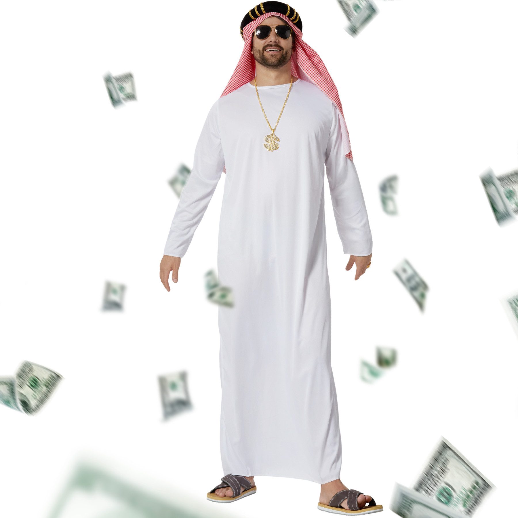 Erobere die Tanzfläche mit königlicher Eleganz! Das Herrenkostüm Prinz bringt den Wüsten-Look direkt auf jede Faschings- oder Mottoparty. Dieses Set besteht aus einem weißen Gewand, einem passenden Kopftuch und einem Kopfband, das Deinen Look authentisch und beeindruckend macht. Ob als stolzer Herrscher oder mysteriöser Wüstenwanderer – mit diesem Kostüm ziehst Du alle Blicke auf Dich.
