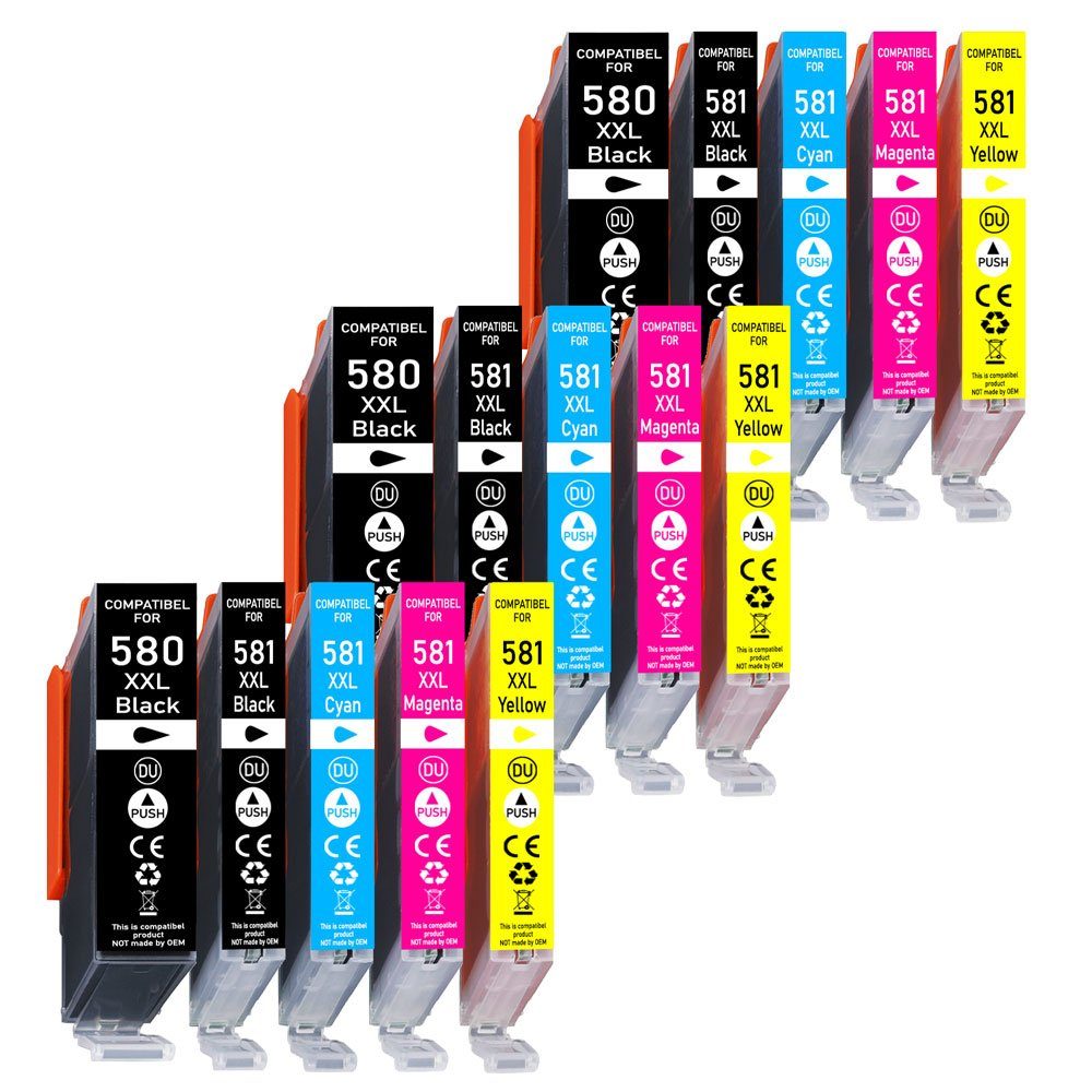 Wenn Sie auf der Suche nach einer hochwertigen und dennoch preisgünstigen Alternative zu den Original-Tintenpatronen von Canon sind, ist das 15er Set kompatible Patronen für Canon 580 und 581 XXL im Multipack die perfekte Wahl. Diese Druckerpatronen wurden speziell für eine Vielzahl von Canon-Druckern entwickelt, darunter die Canon Pixma TR7550, TR8500 und TR8550. Ebenso für die Canon Pixma TS6150, TS6151, TS6240, TS6241, TS6250, TS6251, TS6350, TS6350a, TS6351, TS705, TS705a und TS9550.