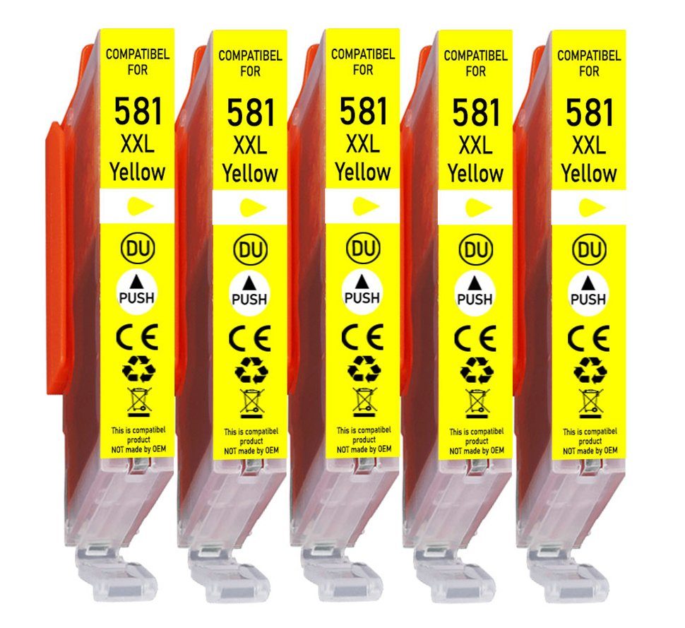 5x Tintenpatrone Ersatz für Canon 581XXL Gelb (CLI-581Y XXL) / 581XL (CLI-581Y XL) / 581 (CLI-581Y)