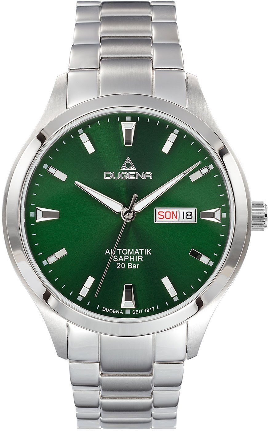 Der Artikel ist aus Edelstahl gefertigt. Das Modell ist mit einem Automatik Uhrwerk ausgestattet. Die Zifferblattfarbe ist Grün. Dieses Modell hat Ziffern in Strichindex. Die Zeitanzeige ist Analog.