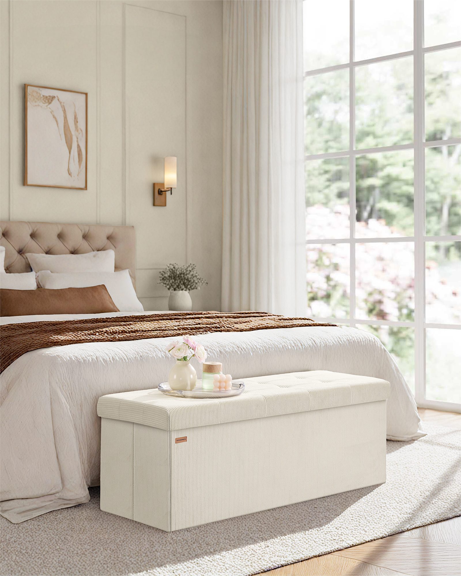 DuneDesign Sitzbank mit Stauraum - 110x38x38 Polsterbank mit Aufbewahrungsbox - Faltbar, Stabile Sitztruhe - Schlafzimmer Ottomane - Kinderzimmer Beistelltisch