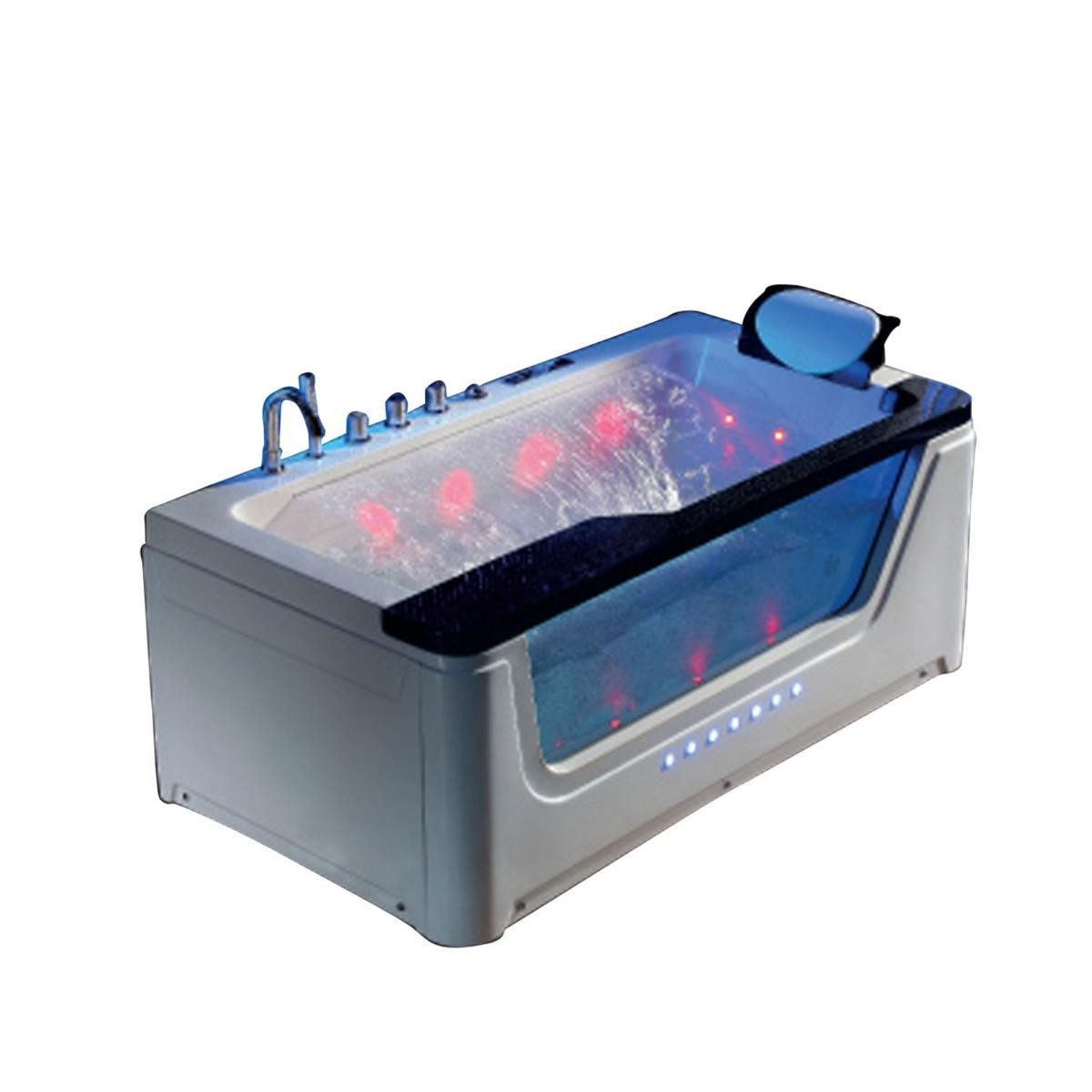 Die Farblichttherapie-LEDs befinden sich an der Seite und am edlen großem Wasserfall. Durch ein integriertes Radio und dem CD-Anschluss können Sie beim Baden Ihre Lieblingsmusik hören. Über das digitale Computerbedienelement regulieren Sie kinderleicht die Heizungstemperatur, um diese auf einem konstanten Level bleiben zu lassen. Впередe Funktionen wie die Wasserpumpe, Luftpumpe und die Ozonreinigung der Whirlwanne etc. werden ebenfalls über das Computerpanel gesteuert.