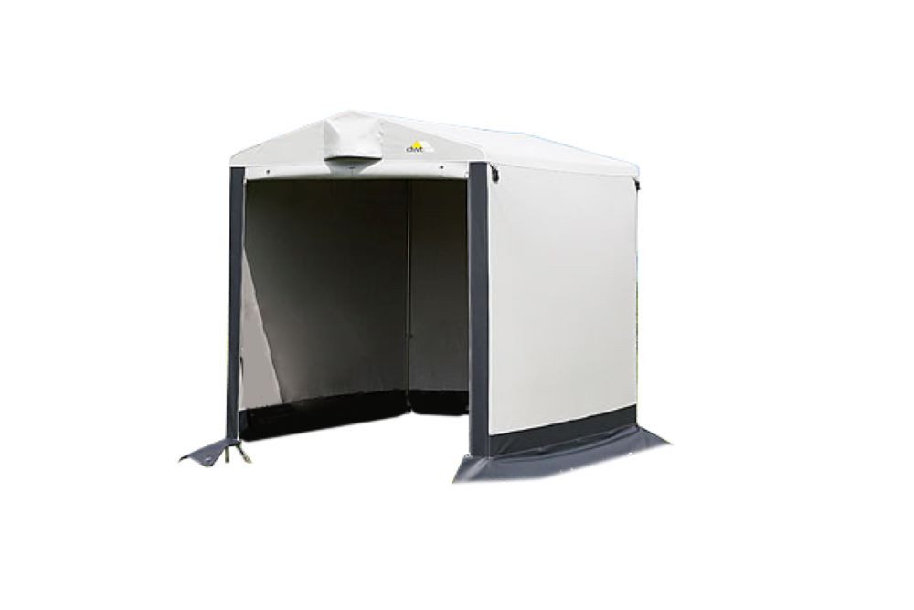 Besonders robuste, strapazierfähige und beidseitig beschichtete/abwaschbare Polyestergewebe werden für dieses Gerätezelt verarbeitet. Während Ihrer Abwesenheit kann dieses Beistellzelt als Vorratszelt/Küchenzelt oder als Fahrradüberdachung bzw. für Camping-Zubehör genutzt werden.