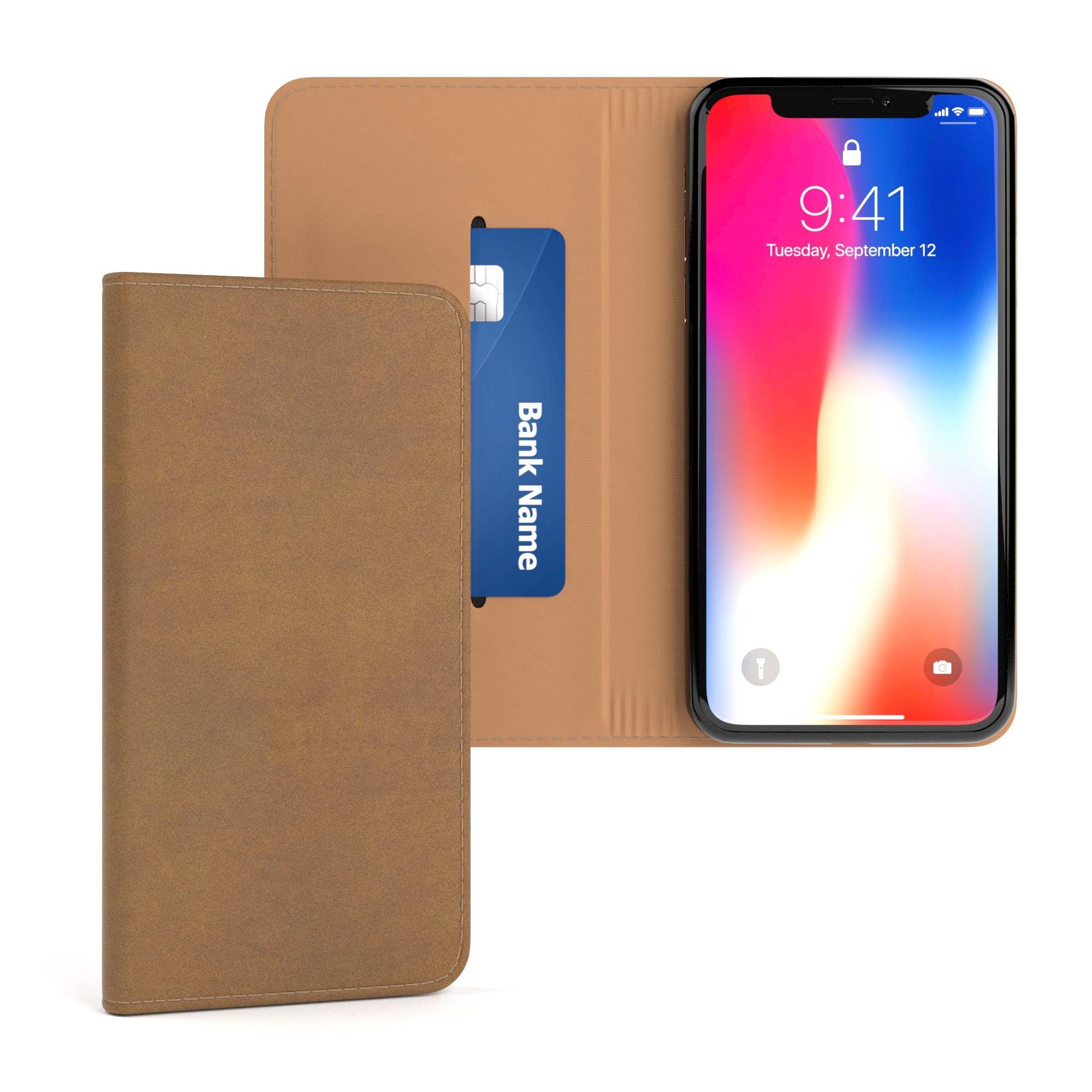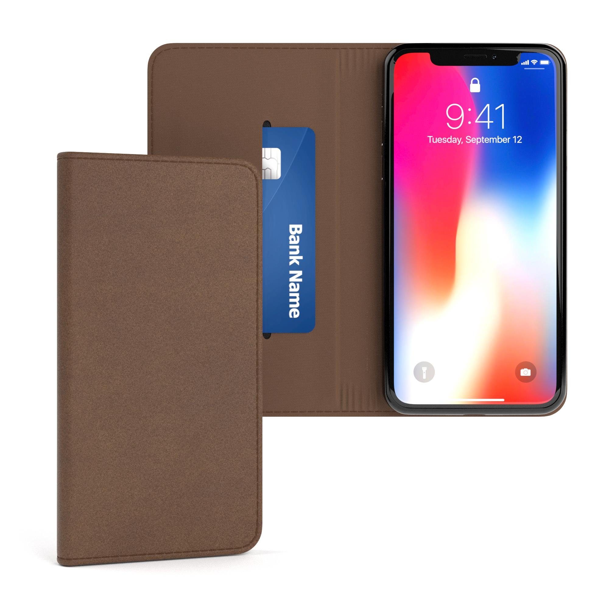 Besondere Merkmale | Handy Klappcase mit Kartenfächer Kunstleder Handytasche Etui Braun |
