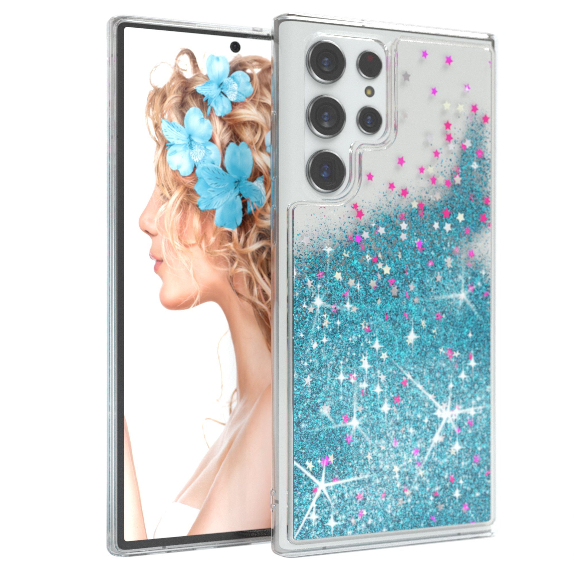 Ausstattung | Stoßschutz, Komfort-Buttons, Kameraaussparung, Kratzschutz, Flüssig Glitzerpartikel |