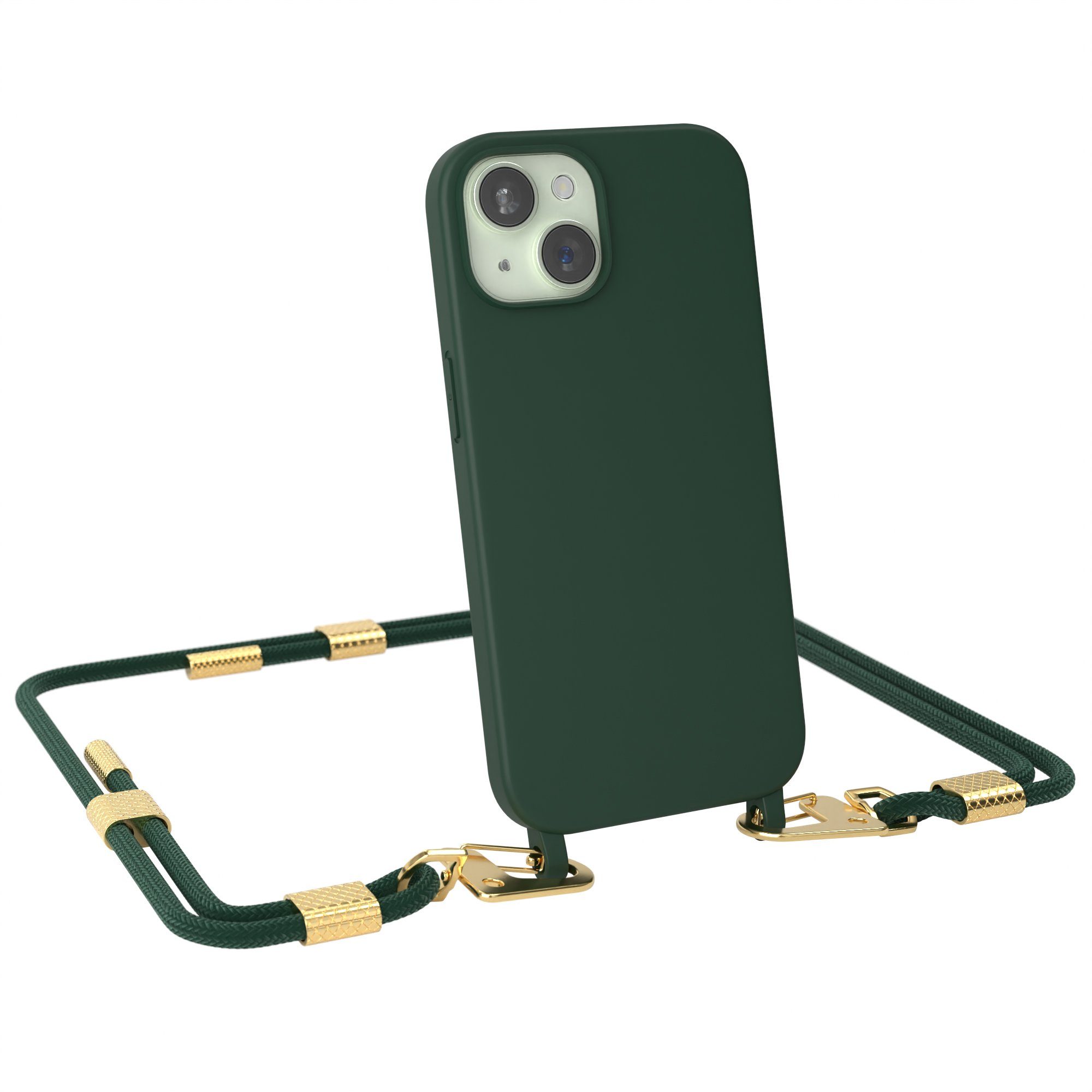 Besondere Merkmale | Silicon Handyhülle mit runder Kette Carabiner Necklace Dunkelgrün Gold |