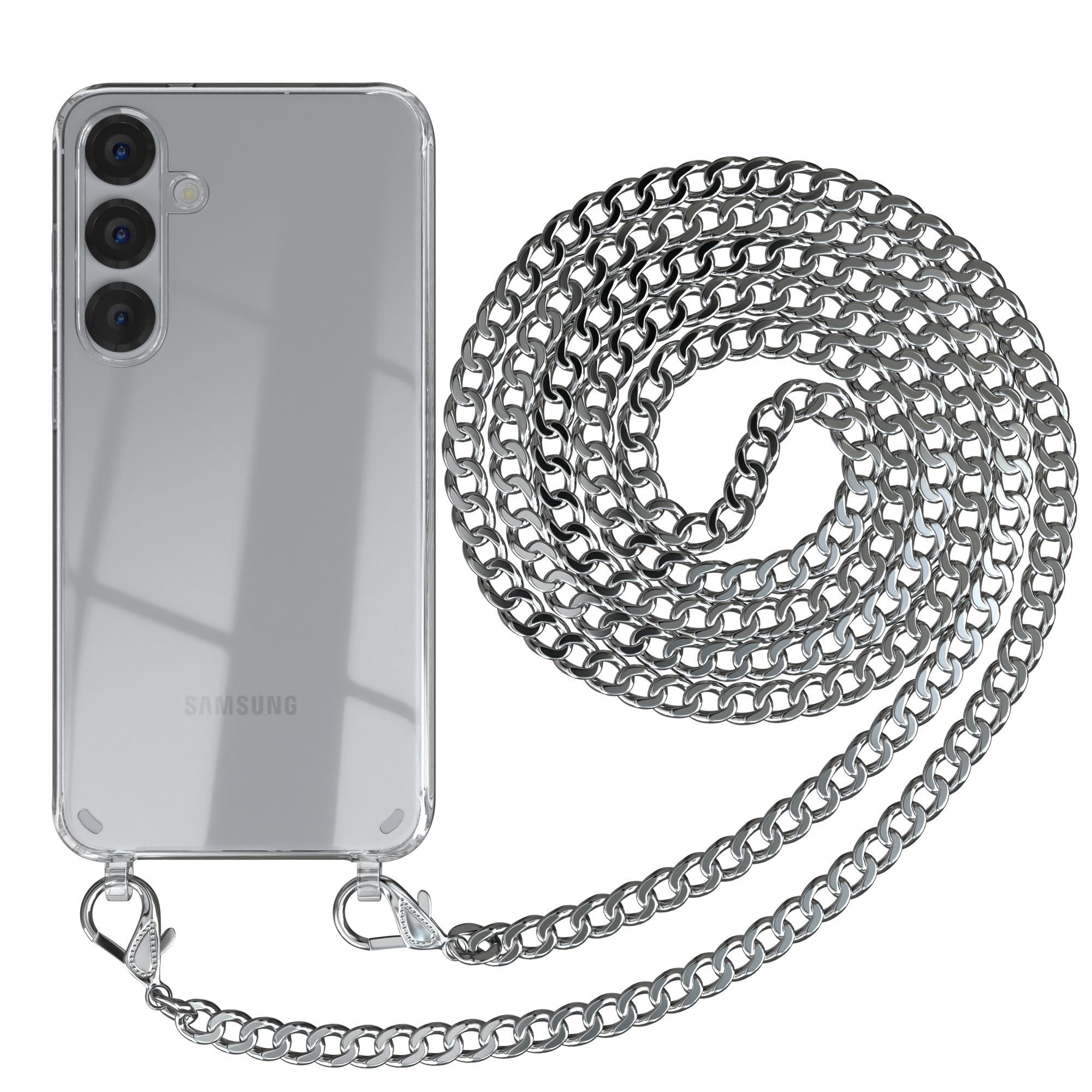 Besondere Merkmale | Handykette Hülle mit Band Slimcover Schutzhülle Schwarz Clips Silber |