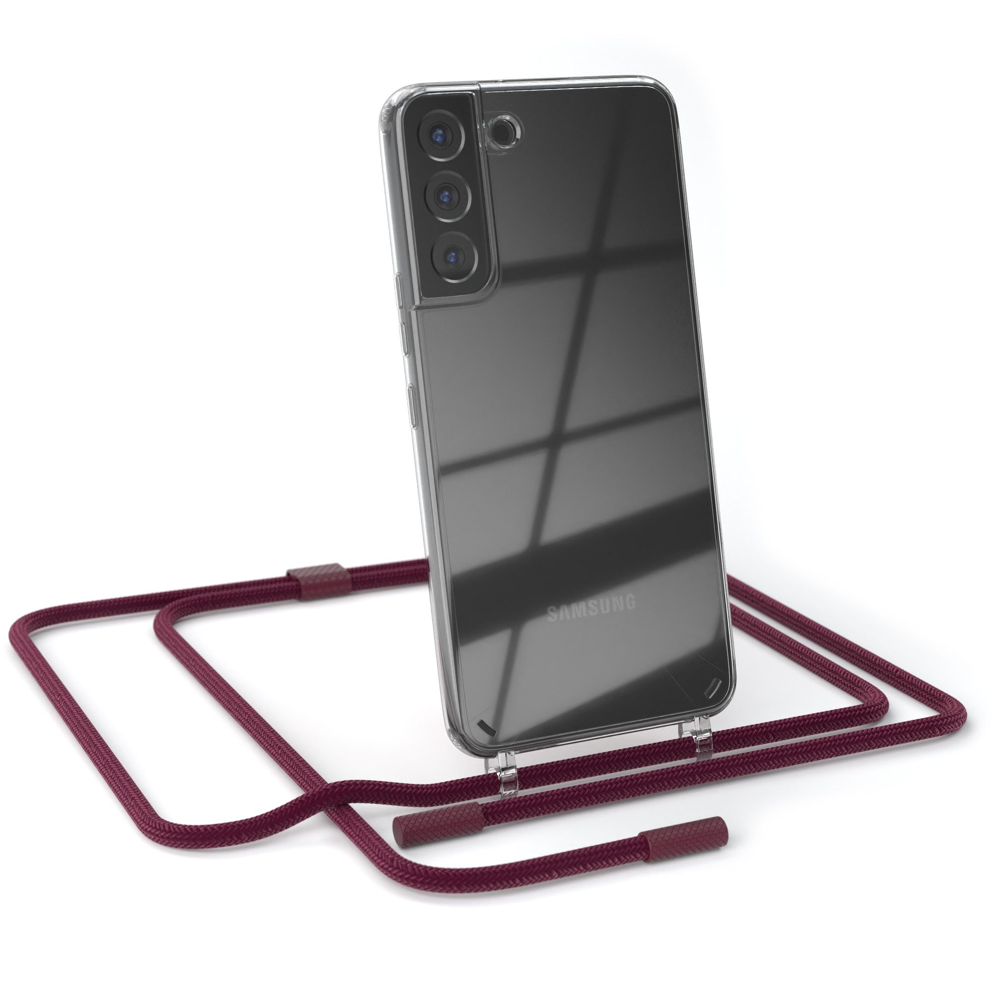 Besondere Merkmale | Silicon Handyhülle mit breiter Kette Carabiner Bordeaux Rot Beere |