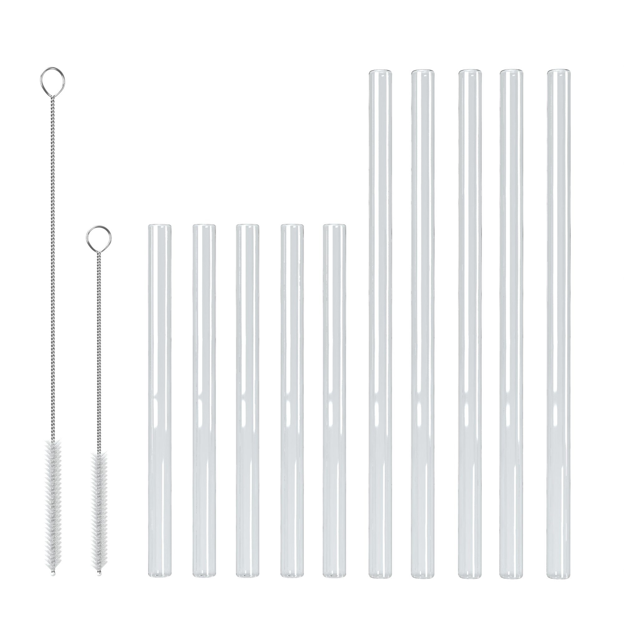 Set-Bestandteile | 5 Glastrinkhalme Lang, 5 Glastrinkhalme Kurz, 1 Reinigungsbürste Lang, 1 Reinigungsbürste Kurz |