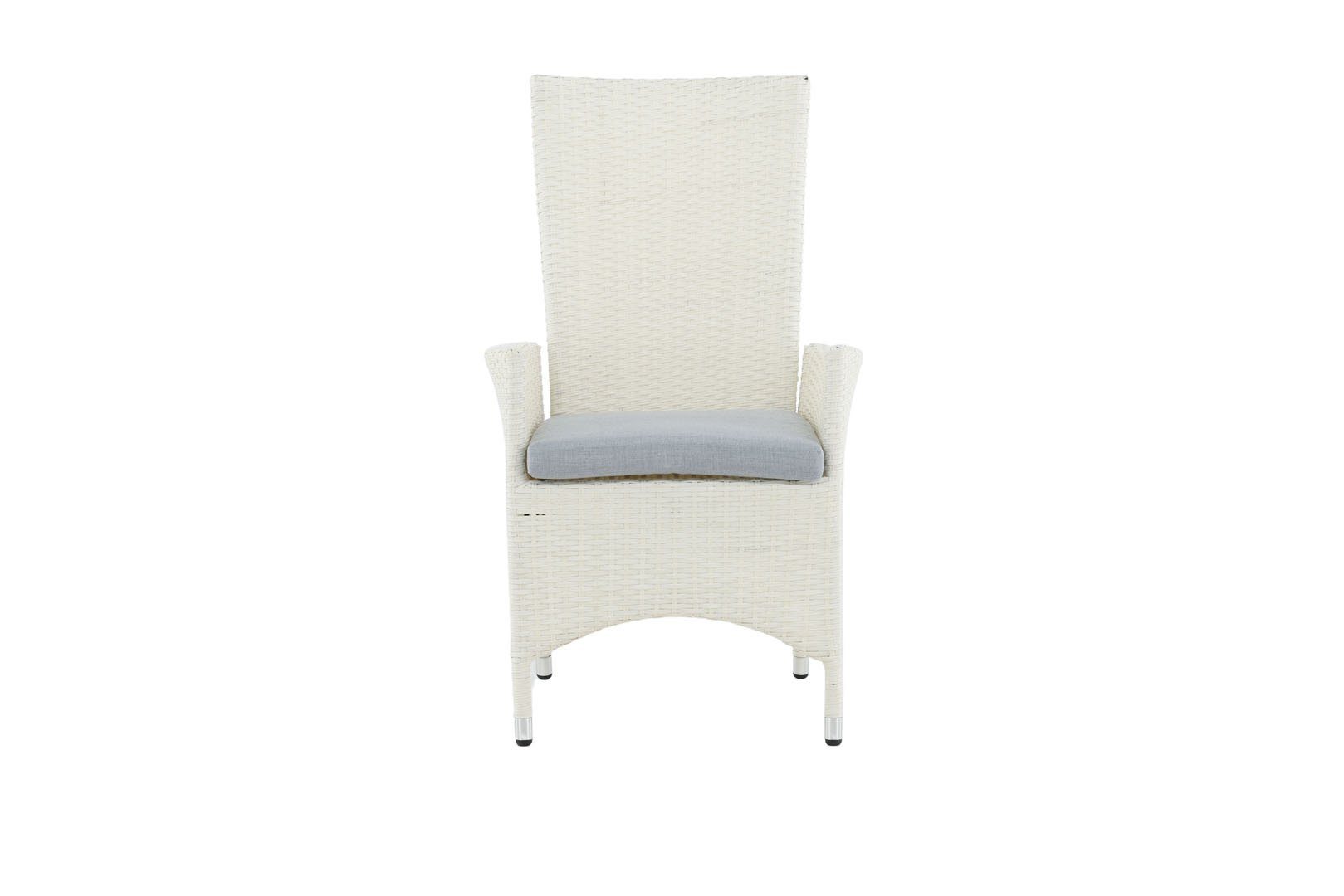 Padova Gartenstuhl mit Armlehnen inkl. Kissen, verstellbar, weiß, grau ist ein Gartenstuhl in der Farbe Weiß, der sowohl Stil als auch Funktionalität in Ihr Zuhause bringt. Kissen, verstellbar weiß, grau. HINWEIS: Da der Stuhl zu zweit in einem Karton verpackt ist, muss eine gerade Anzahl an Stühlen bestellt werden. Sitzhöhe: 42 cm. Sitztiefe: 51 cm. Sitzbreite: 47 cm. Armlehnenhöhe: 64 cm. Maximales Gewicht des Stuhls: 160 kg. Im Lieferumfang enthaltene Kissen: Y. Stapelbar: N. Verstellbar: Y. Dieses Produkt wurde mit viel Liebe zum Detail entwickelt, um sowohl Ästhetik als auch hohe Haltbarkeit zu gewährleisten. Bei der Gestaltung wurde sowohl auf Funktionalität als auch auf Stil geachtet, was es zur perfekten Wahl für jeden Raum in Ihrem Zuhause macht. Die verwendeten Materialien sind von hoher Qualität, was dem Produkt eine lange Lebensdauer verleiht und dafür sorgt, dass es dem täglichen Gebrauch standhält. Ob zur Aufbewahrung oder als dekorative Ergänzung, dieses Produkt wertet Ihre Einrichtung auf und bringt zusätzlichen Komfort und Eleganz in Ihr Zuhause.