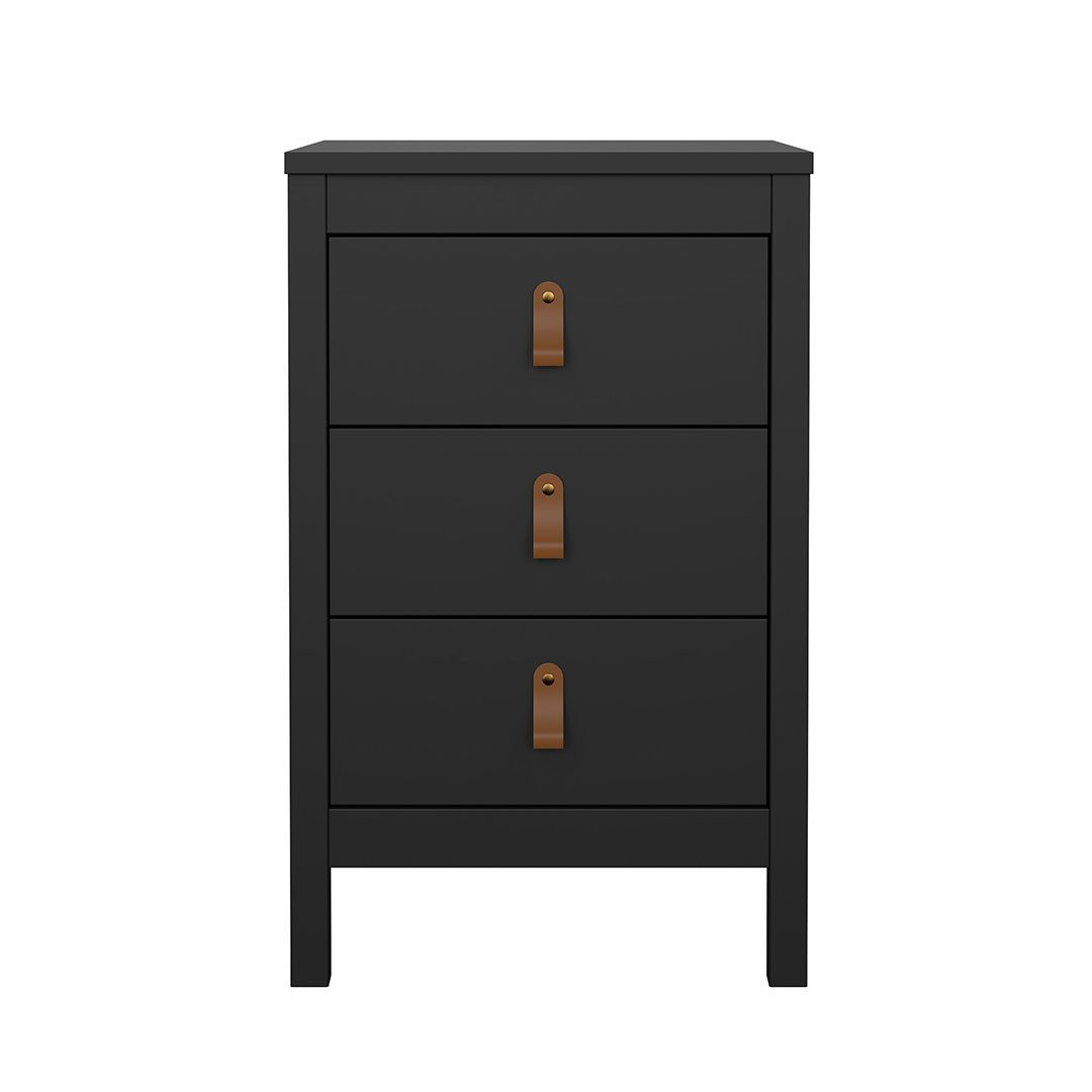 Madrid Nachttisch 3 Schubladen mattschwarz. Der Nachttisch Madrid in mattschwarzer Ausführung ist ein stilvolles Möbelstück, das Funktion und Ästhetik vereint. Mit drei praktischen Schubladen erhalten Sie viel Stauraum für Ihre Kleinigkeiten und persönlichen Gegenstände. Das minimalistische Design und die schlichten Griffe verleihen dem Nachttisch ein modernes Aussehen, das perfekt zu einer Vielzahl von Schlafzimmerdekoren passt. Die mattschwarze Farbe sorgt für einen dezenten und eleganten Look, der sich problemlos in Ihr Zuhause integrieren lässt.