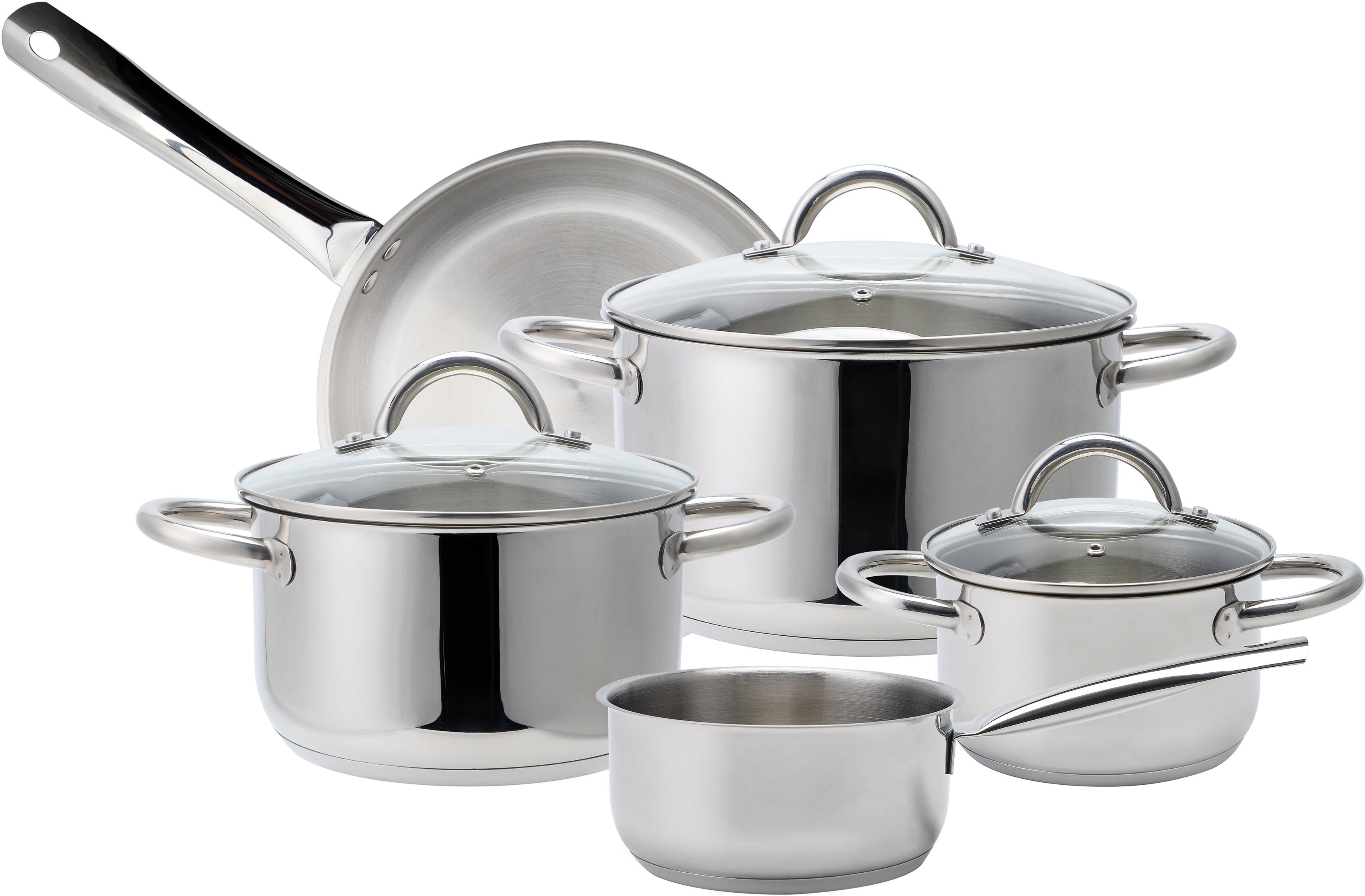 Lieferumfang | 1x Bratpfanne Ø 24 cm, H. 5,5 cm 1x Kasserolle Ø 16 cm, H. 7,5 cm 1x Kochtopf Ø 16 cm, H. 9,5 cm 1x Kochtopf Ø 20 cm, H. 11,5 cm 1x Kochtopf Ø 24 cm, H. 13,5 cm Inhalt Kochtopf: 5,9 / 3,5 / 1,8 l |