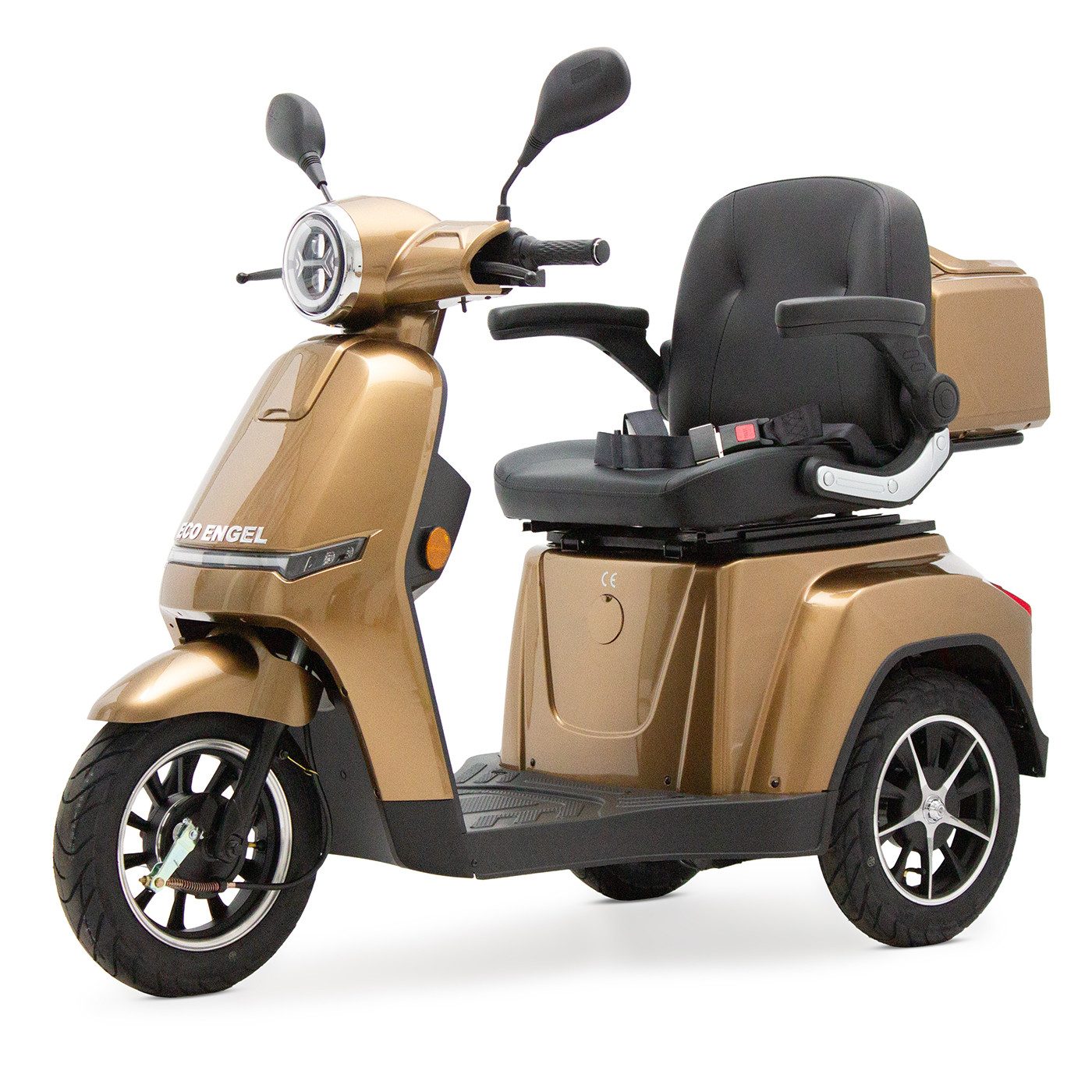 Als Roller für Senioren und Transporthilfe für Menschen mit Einschränkungen muss das Seniorenmobil Eco Engel einige Anforderungen erfüllen, die von uns vor dem Versand selbstverständlich geprüft werden. Dazu zählen technische Schutzmaßnahmen, wie beispielsweise das Differenzialgetriebe, welches zusammen mit dem 1000 Watt Motor eine kraftvolle Einheit bildet, die auch in engen Kurven ein Kippen erschwert.