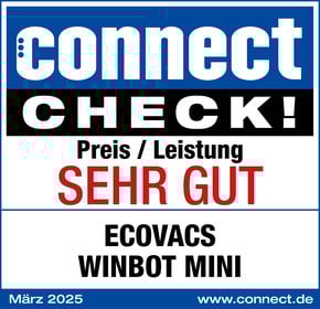 Das Magazin „connect“ testet den Ecovacs Winbot Mini im Einzeltest. Das Gerät sorgt für streifenfreie Sauberkeit. Es ist einfach zu bedienen und wendig. Das Konzept ist „durchdacht“. Außerdem überzeugt die Sicherheitsausstattung mit einem Haltegurt inklusive Karabiner und einem Gummiriemen. Insgesamt ist das Modell ein „kompakter Roboter“ und ein „PREISTIPP“.