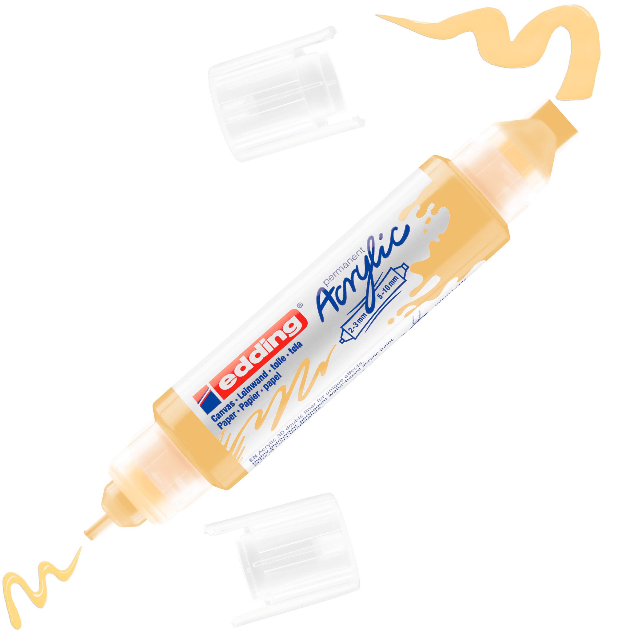 Der edding 5400 'Acryl 3D - Double Liner' hat zwei Seiten mit denen gearbeitet werden kann und ist eine Innovation im Gestalten mit Acryl! Die Strichbreite beträgt ca. 2-3 mm und 5-10 mm. Hierbei handelt es sich um eine Acrylpaste in Künstlerqualität. Die Squeeze-Tube mit 2 Dosierspitzen erleichtert Ihnen künstlerische Strukturen und 3D-Effekte zu erzeugen. Die cremige Paste ist geruchsarm, lichtecht, kann gemischt und mit Wasser verdünnt werden. Ein garantierter Malspaß mit einer ausgewogenen Farbauswahl aus beliebten Farben und Trendfarben in Standard, Neon, Pastell oder Metallic. Ein vielseitiger 3D-Liner der durch seine hohe Deckkraft und brillante Farben überzeugt. Ideal für Mal-Projekte im Freien und auf Reisen.