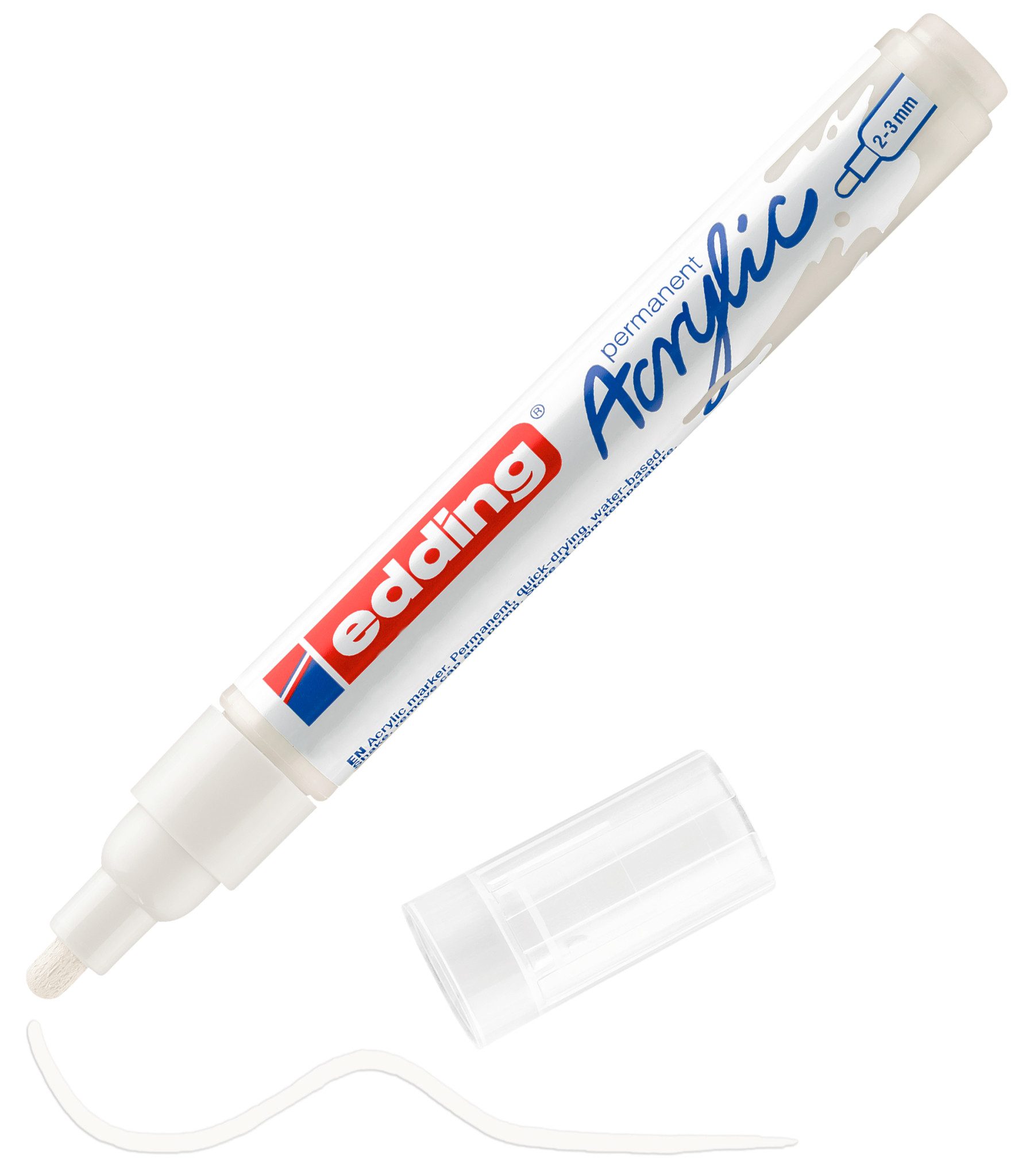Mit dem edding 5100 'Acrylmarker - Mittel' erwerben Sie den neuen und vielseitigen Allrounder der Marke edding. Der handliche Marker mit einer Strichstärke von 2-3 mm ist bestens geeignet zum Ausmalen kleinerer Flächen, zum Konturenmalen und zum Schreiben. Die Mittlere Rundspitze sorgt für einen gleichmäßigen Farbauftrag. Die Acrylfarbe trocknet deckend innerhalb von wenigen Sekunden auf, ist wasserfest, lichtecht und geruchsarm.