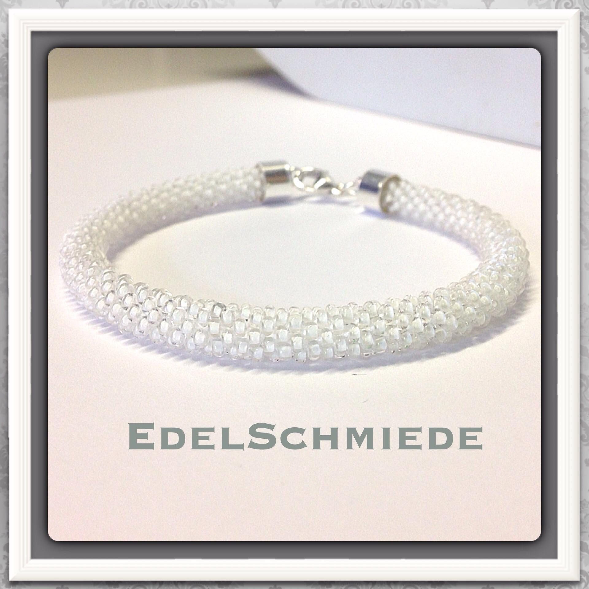 Armband Edelschmiede925 Häkelarmband aus Glasperlen in weiß mit 925 Silber