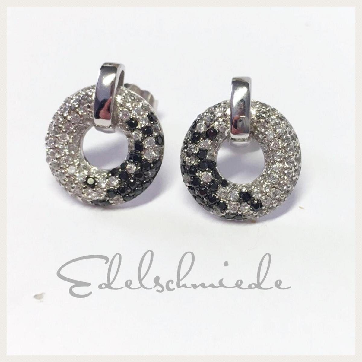 • edle Ohrstecker in 925/- Sterling Silber rhod mit schwarzen und weißen Zirkonias