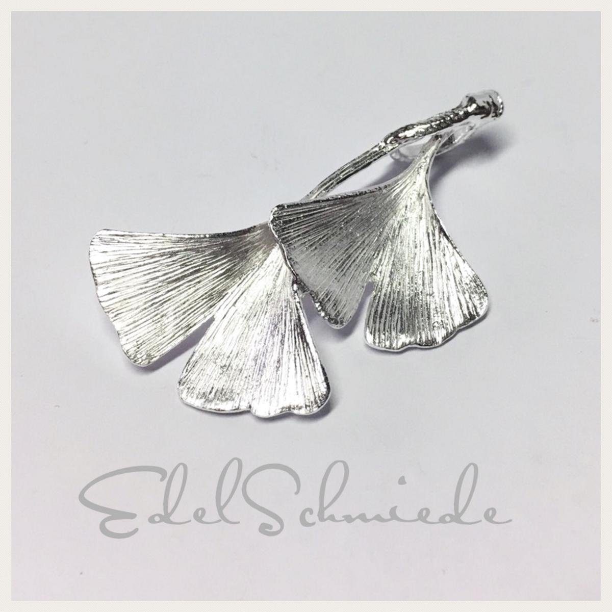 • langer Ginko Anhänger in 925 Sterling Silber matt