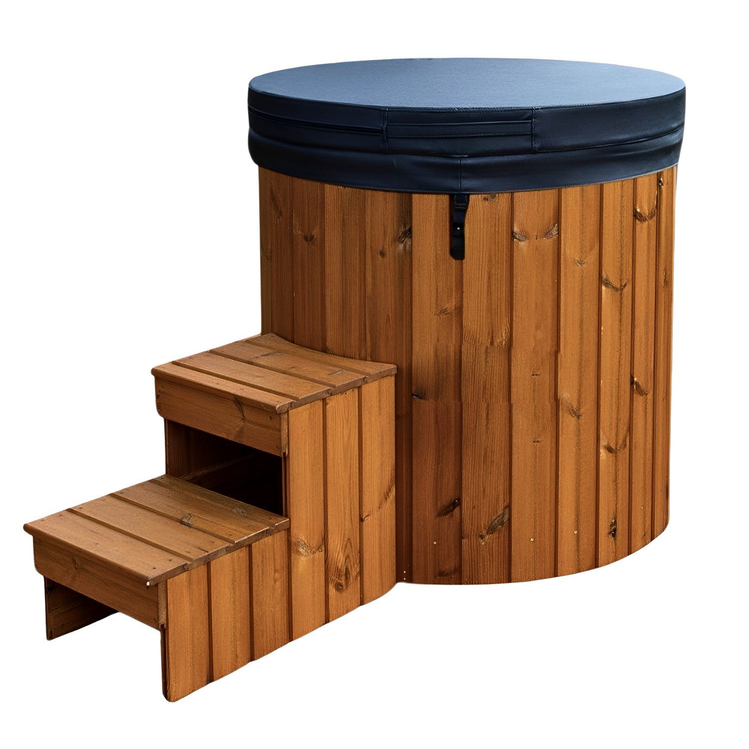 Das Badefass von EDEN Holzmanufaktur ist das hochwertigste Einstiegsmodell unter den Abkühlfässern und Tauchbecken und ideal für traditionelles Winterbaden sowie das vollständige Eintauchen in kaltes Wasser. Es repräsentiert die ursprünglichste Form der Eistonnen – auch bekannt als Cold Tub – und ist speziell dafür konzipiert, nach dem Saunagang für eine intensive Abkühlung zu sorgen. Besonders durch die immer populärer werdende Wim-Hof-Methode rückt das Eisbaden zunehmend in den Fokus. Die gesundheitlichen Vorteile des kalten Badens – wie etwa die Stärkung des Immunsystems, die Anregung der Durchblutung und der Stressabbau – überzeugen nicht mehr nur Saunafreunde. Mit einem kompakten (Außen)-Durchmesser von nur 105 cm und einer Höhe von 102 cm ist das Tauchfass äußerst platzsparend und lässt sich problemlos im heimischen Garten integrieren. Das natürliche Thermoholz in Kombination mit dem farblich wählbaren Kunststoffeinsatz macht das Badefass zu einem ästhetischen Highlight mit besonders einfacher Pflege. Der hochwertige GFK-Inneneinsatz (Glasfaser-verstärkter Kunststoff) sorgt für Langlebigkeit und eine dauerhaft ansprechende Optik. Dank des durchdachten Designs bietet der Badebottich eine perfekte Erfrischung zum besten Preis-Leistungs-Verhältnis. Die Echtholz-Einstiegstreppe und der Thermodeckel aus schwarzem Yachtleder mit PU-Füllung garantieren maximalen Komfort, halten die Kälte besonders lange in der Eistonne, schützen zuverlässig vor äußerer Wärme und sorgen so selbst an heißen Tagen für ein perfektes Eisbad-Erlebnis.