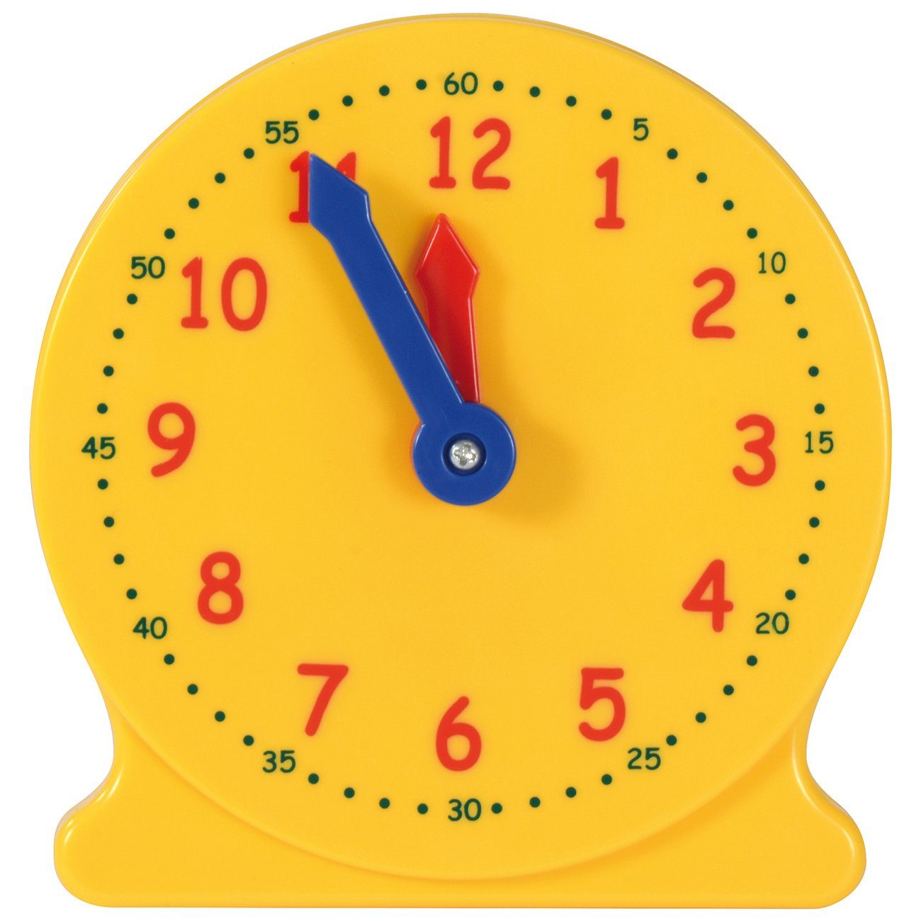 ... 60 Minuten und 12 Stunden zeigt das Ziffernblatt dieser Lernuhr. Durch Bewegen des blauen Minutenzeigers oder des Drehrades auf Rückseite kann die Zeit eingestellt werden. Wichtig: für stabilen Stand den Fuß zum Aufstellen umklappen und einrasten lassen. Die große Uhr hat zusätzlich eine Wandaufhängung.