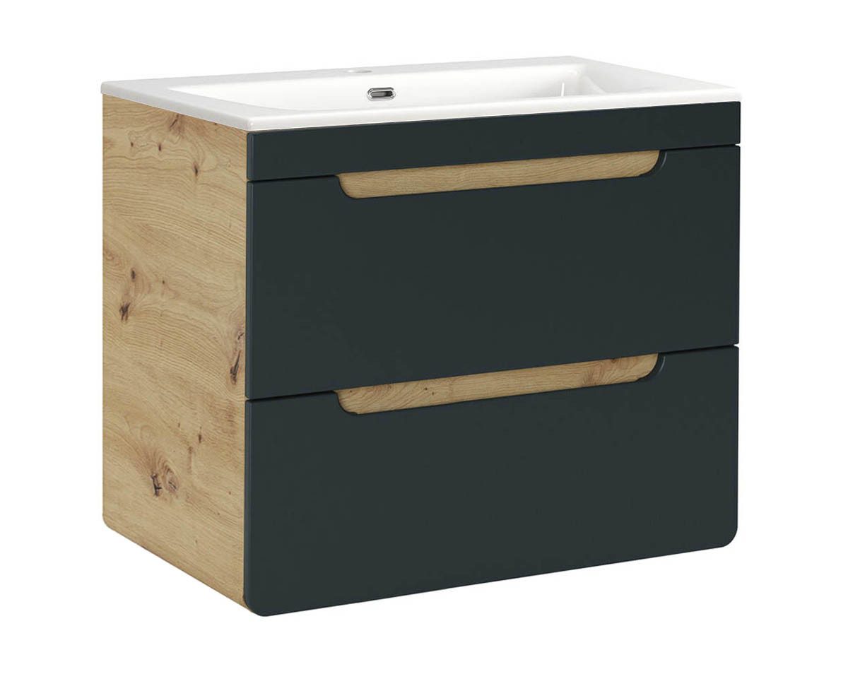 Aruba ist eine Bad-Kollektion, die durch ihr Design besticht - die Kombination aus soliden Karkassen mit filigranen, dunklen Fronten und Holzdetails machen die Möbel zu einem zentralen Element im Bad-Interieur. Die abgerundeten Korpus-Kanten sind immer wieder ein Hingucker! Es finden sich diverse Waschtische in verschiedenen Größen, dank denen jedes Badezimmer-Konzept individuellen Bedürfnissen angepasst werden kann.
