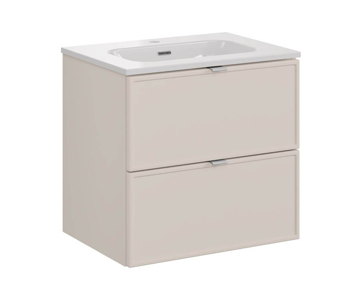 Die BELEZA Bad-Kollektion ist eine harmonische Mischung aus modernen Trends und klassischer Eleganz. Die Möbel sind in einem dezenten Kaschmir-Finish gehalten, welches Ihrem Bad einen weichen, harmonischen Charakter verleiht. Die markanten Fronten mit gefrästem Rahmenmuster sorgen für eine edle Note.
