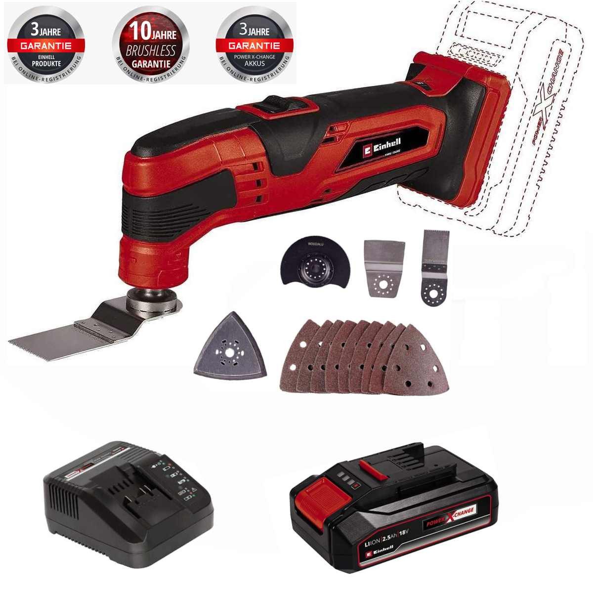 Einhell Akku-Multifunktionswerkzeug TC-MG 18 Li Power X-Change (Li-Ion, 18 V, 11000-20000 min^-1, 3.2° Oszillationswinkel, magnetische Werkzeugaufnahme, inkl. Zubehör, inkl. 2,5 Ah Akku und Ladegerät)