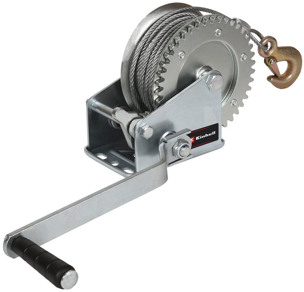 Lieferumfang | Handseilwinde TC-WI 800, Drahtseil, Lasthaken mit Sicherungsklappe, Montageplatte, Handkurbel mit Softgrip |