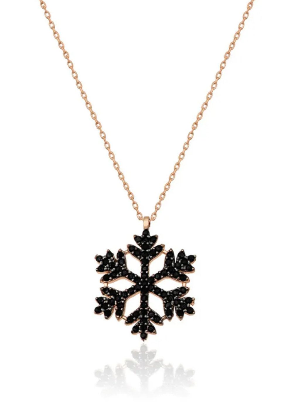 Elegante schwarze Schneeflocken-Halskette aus hochwertigen Materialien.