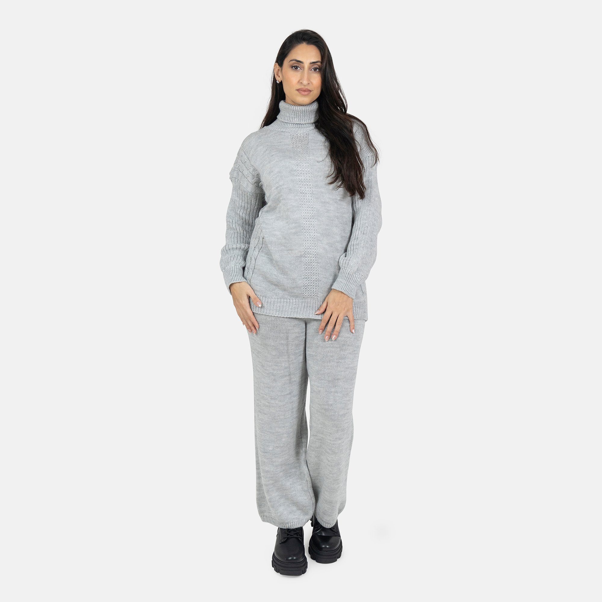 Hochwertige Materialien: Der Strick-Zweiteiler besteht aus erstklassigem Material, das sowohl angenehm auf der Haut liegt als auch langlebig ist.