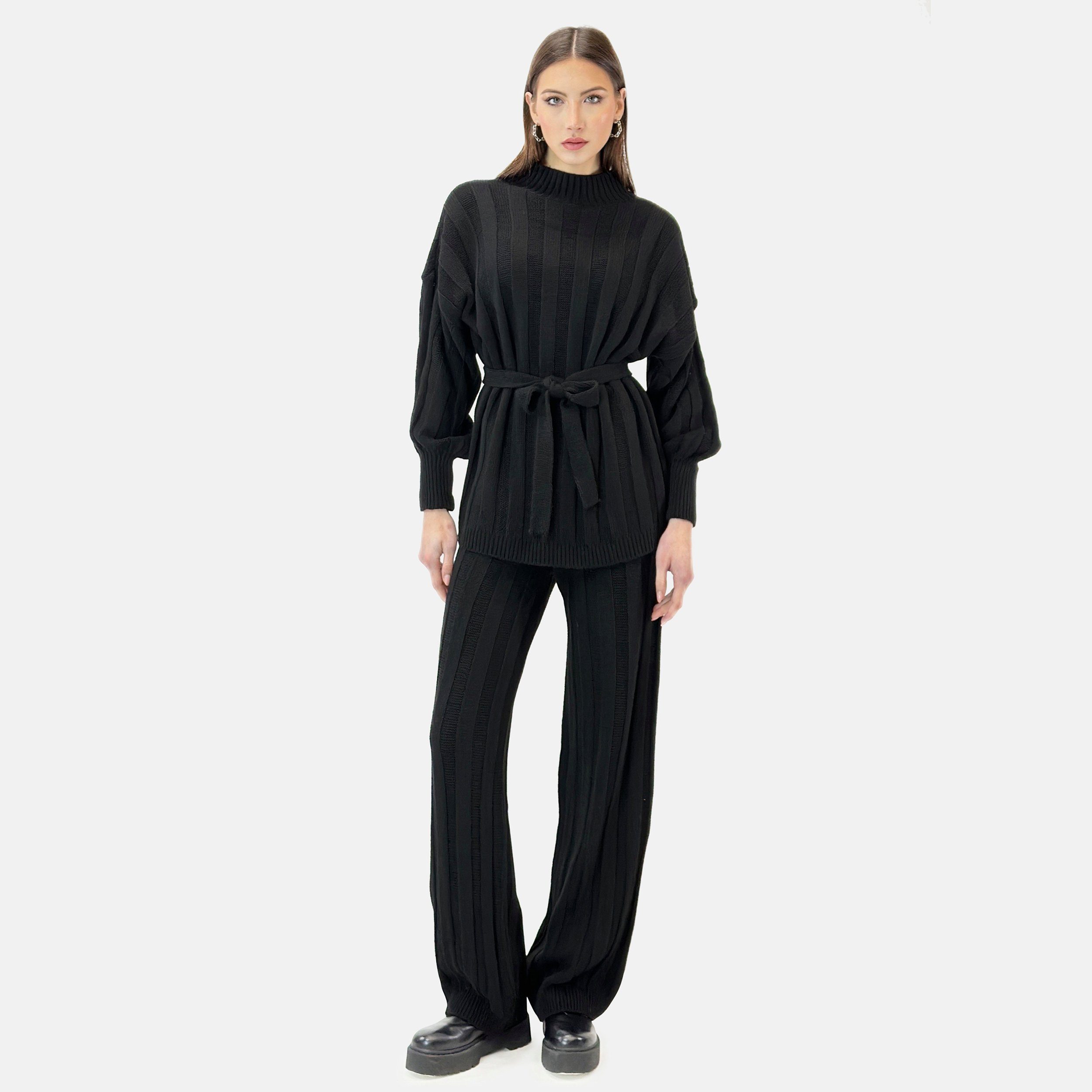 Hochwertige Materialien: Der Strick-Zweiteiler besteht aus erstklassigem Material, das sowohl angenehm auf der Haut liegt als auch langlebig ist.