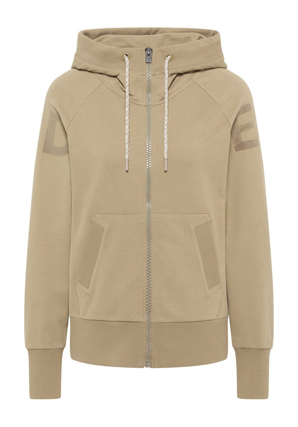Farbe | sondern auch superbequem! Die grüngoldene Sweatjacke Kiana von Elbsand begleitet dich perfekt durch den Alltag. Die schmale Passform trifft auf eine weiche Sweat-Qualität. Gekrönt wird der Look durch eine große Kapuze und einen Logo-Flockprint auf der Schulter und am Rücken. Jetzt online bei uns bestellen!- grüngoldene Sweatjacke Kiana von Elbsand- Kapuze mit gemusterten Kordeln- slim fit |