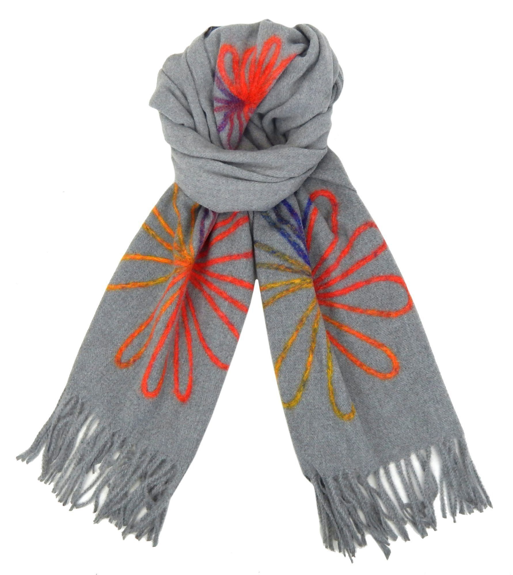 Besondere Merkmale | Herbst Winterschal mit eingewebten Blumen-Motiv |
