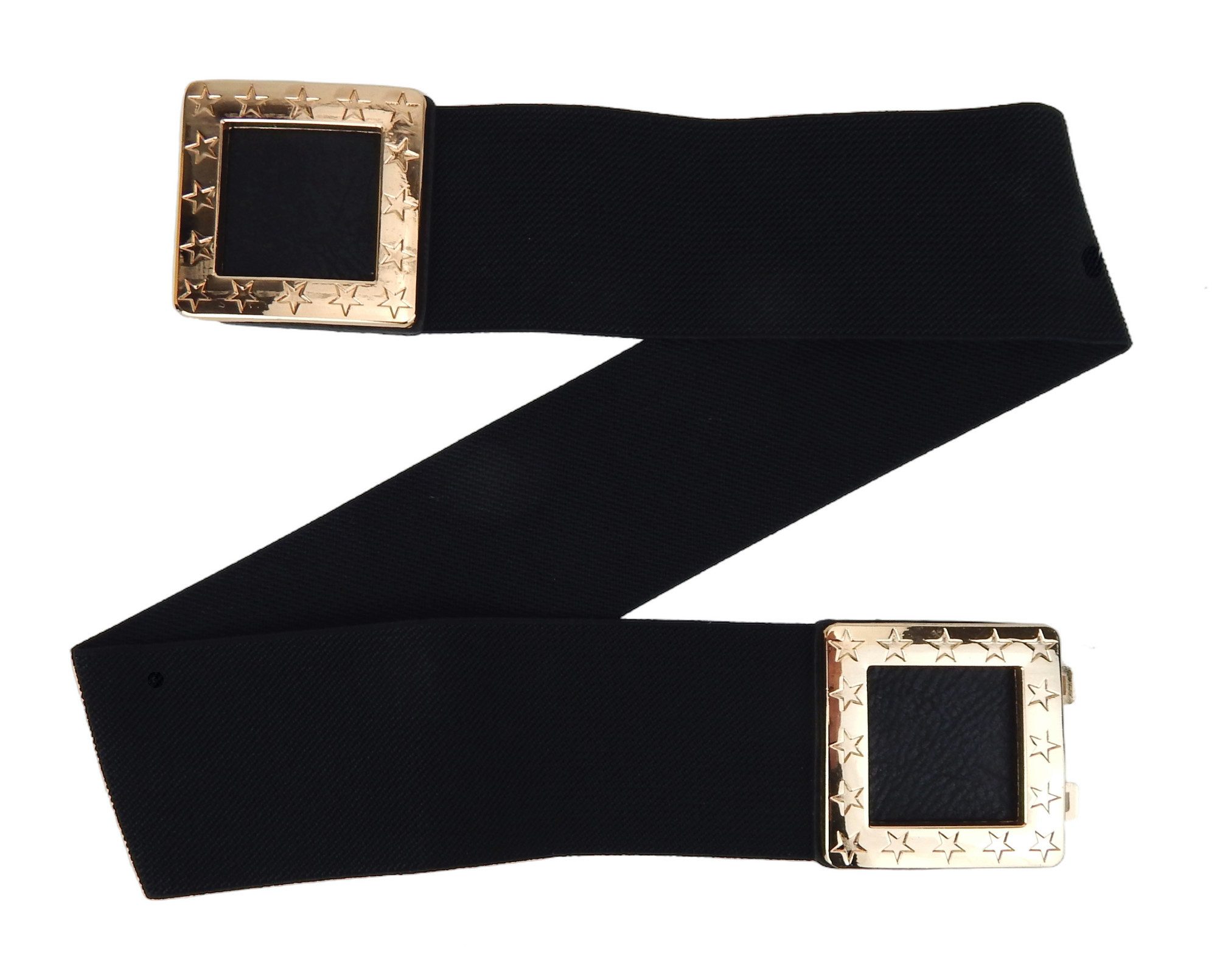 Details: dehnbarer brauner Gürtel mit Statementschnalle -